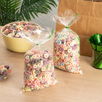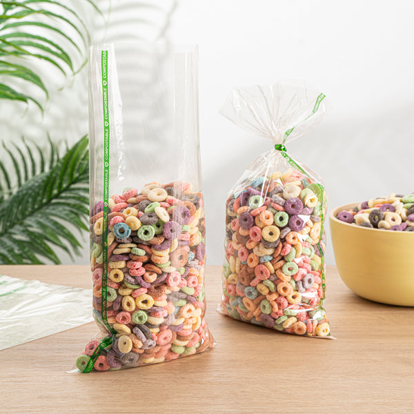 Elevate your food storage solutions with our Basic Nature Clear Plastic Bags, designed to seamlessly combine sustainability with practicality. These bags are crafted from home compostable plastic, allowing for responsible disposal right at home. Featuring a no flap design, these candy bags make storing your snacks a breeze, ensuring easy access and convenience. The heat-sealable convenience of these bakery bags locks in the freshness of your snacks, preserving them perfectly. Showcasing a clear finish, these greaseproof bags beautifully highlight the vibrant colors of your treats or confections. Suitable for various uses, these bags maintain the quality of your goodies, whether stored in the pantry or the freezer. Measuring 14.02 inches in length by 7.01 inches in width, these bags offer ample space to accommodate a variety of food items. Sold in a 100 count box.