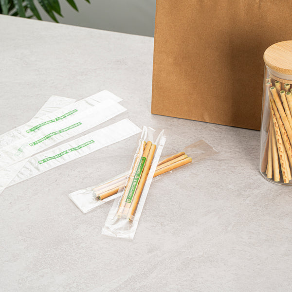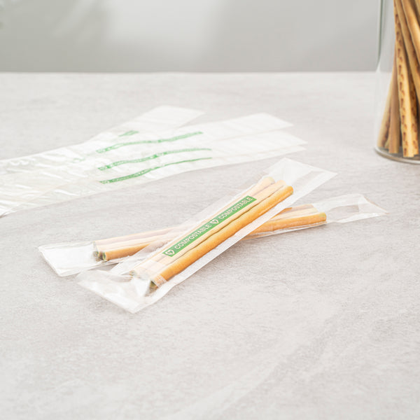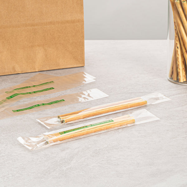 Elevate your food service offerings with our Basic Nature Clear Plastic Bags, expertly designed to combine sustainability with functionality. These bags are made from home compostable plastic, supporting environmentally-conscious disposal right in your own home. The secure flap closure of these candy bags keeps your treats contained yet readily accessible. To maintain the freshness of your baked goods, these bakery bags offer heat-sealable convenience, effectively locking in flavor and aroma. With a clear finish, these freezer-safe bags beautifully showcase the vibrant colors of your delicious treats, making them as appealing to the eye as they are to the palate. Measuring 8 inches in length by 1 inch in width, these greaseproof bags are perfect for storing a variety of snacks and goodies. Sold in a 100 count box.