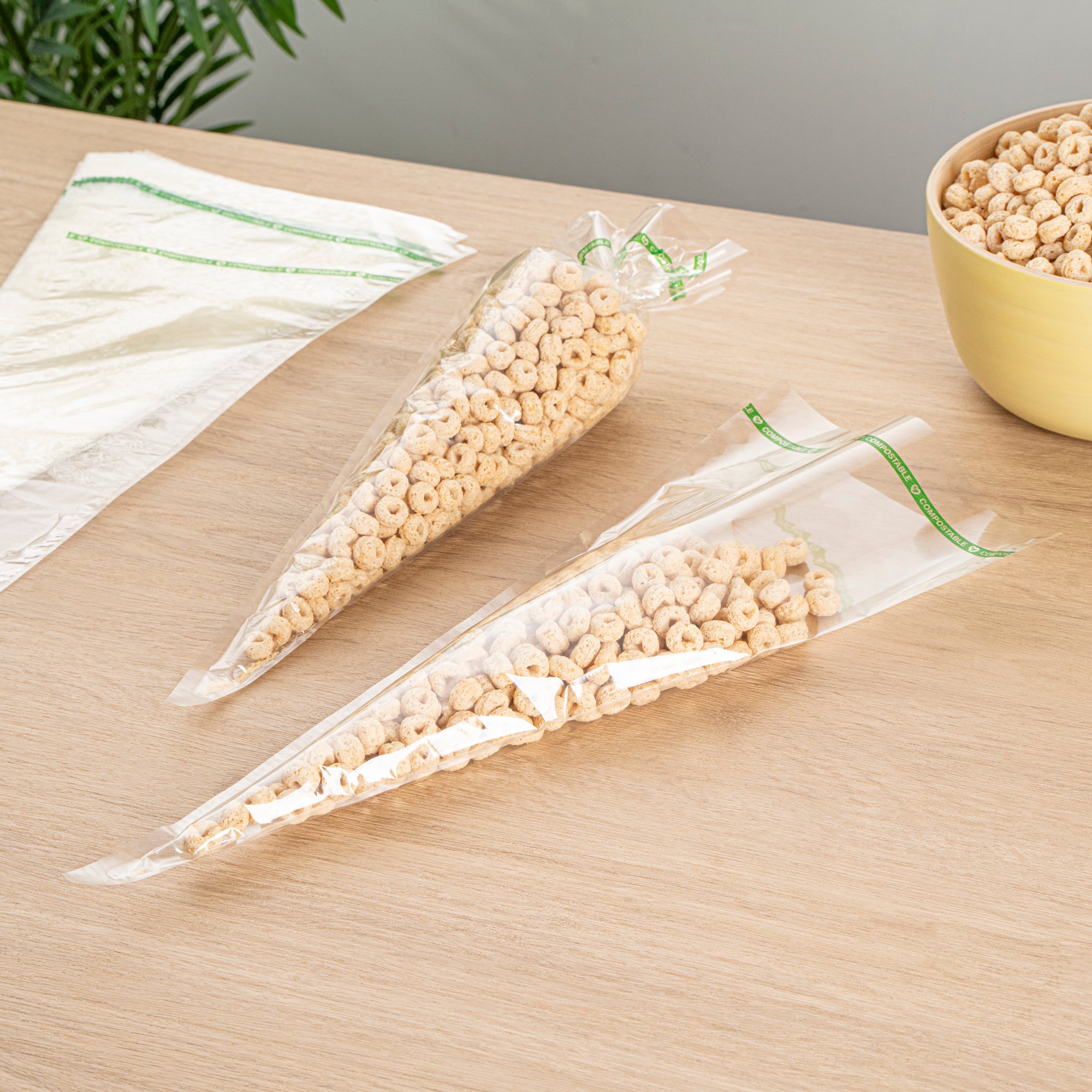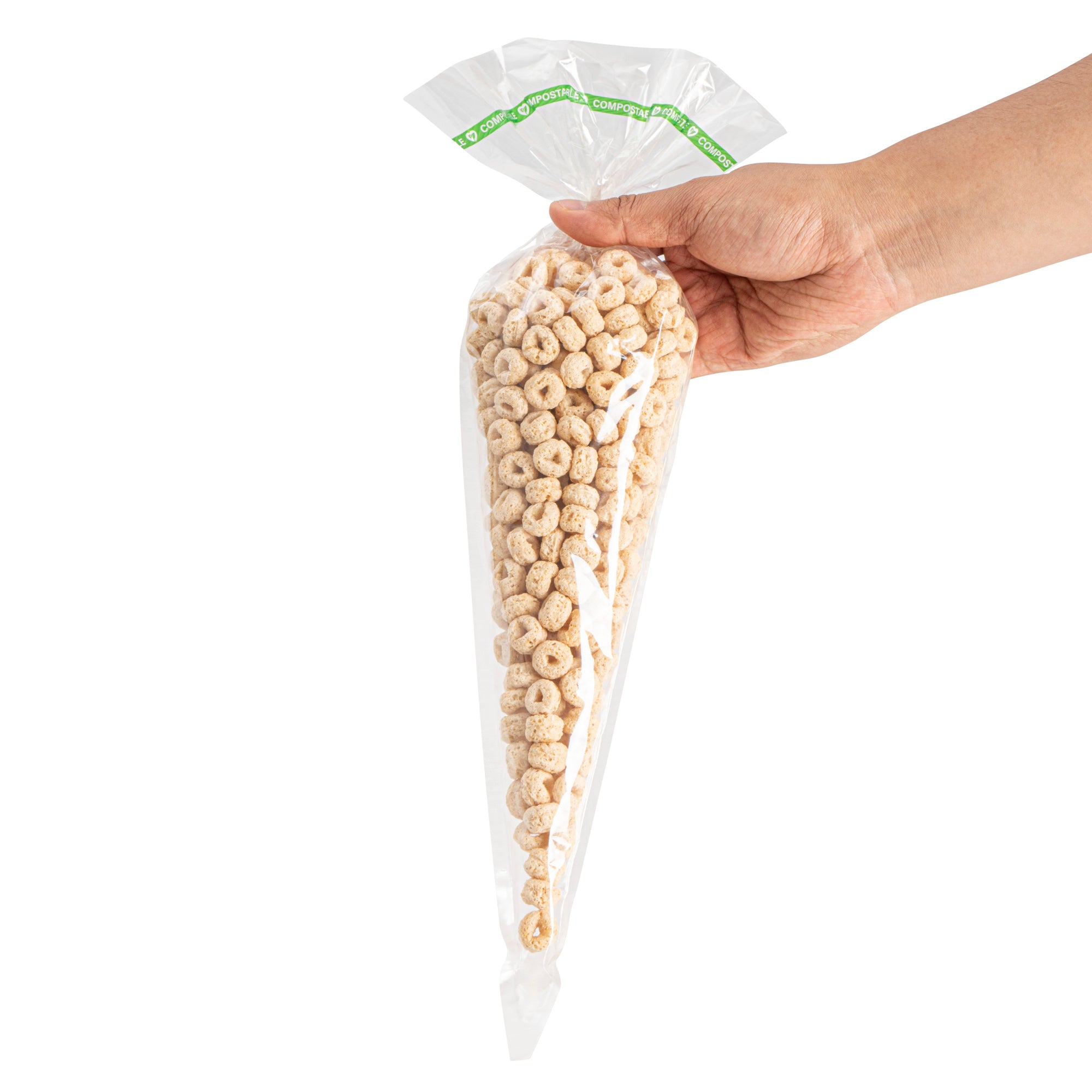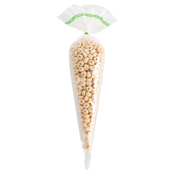 BASIC NATURE CLEAR PLASTIC CONE BAG - COMPOSTABLE, HIGH CLARITY