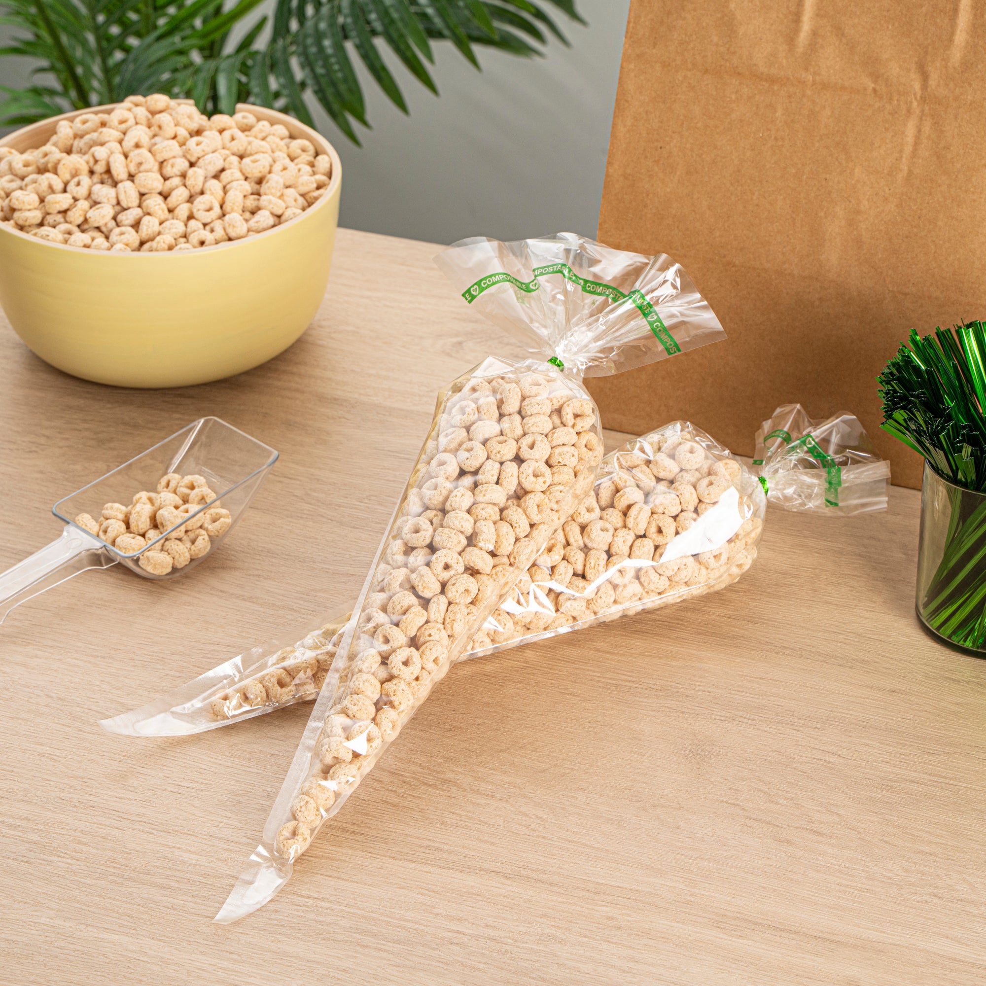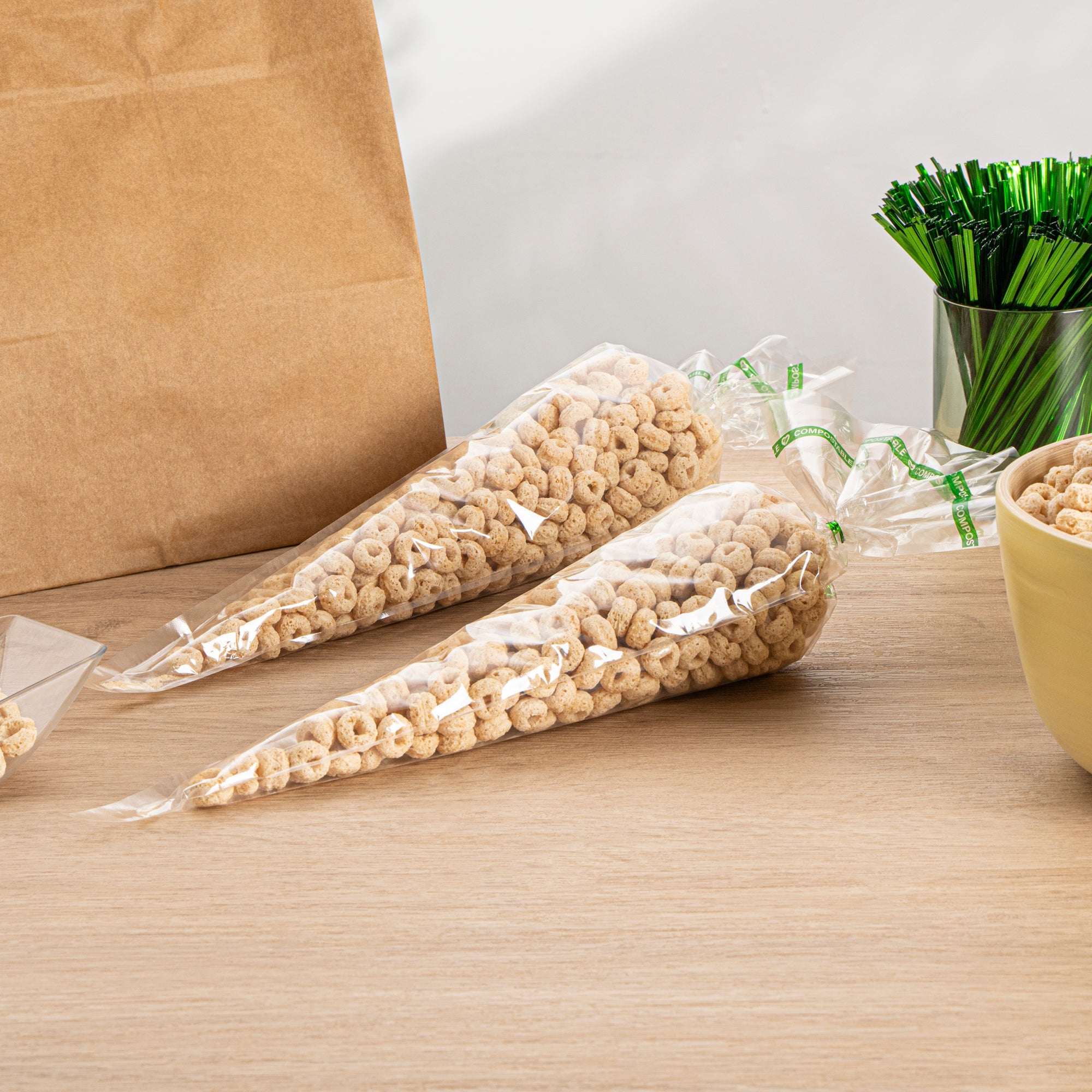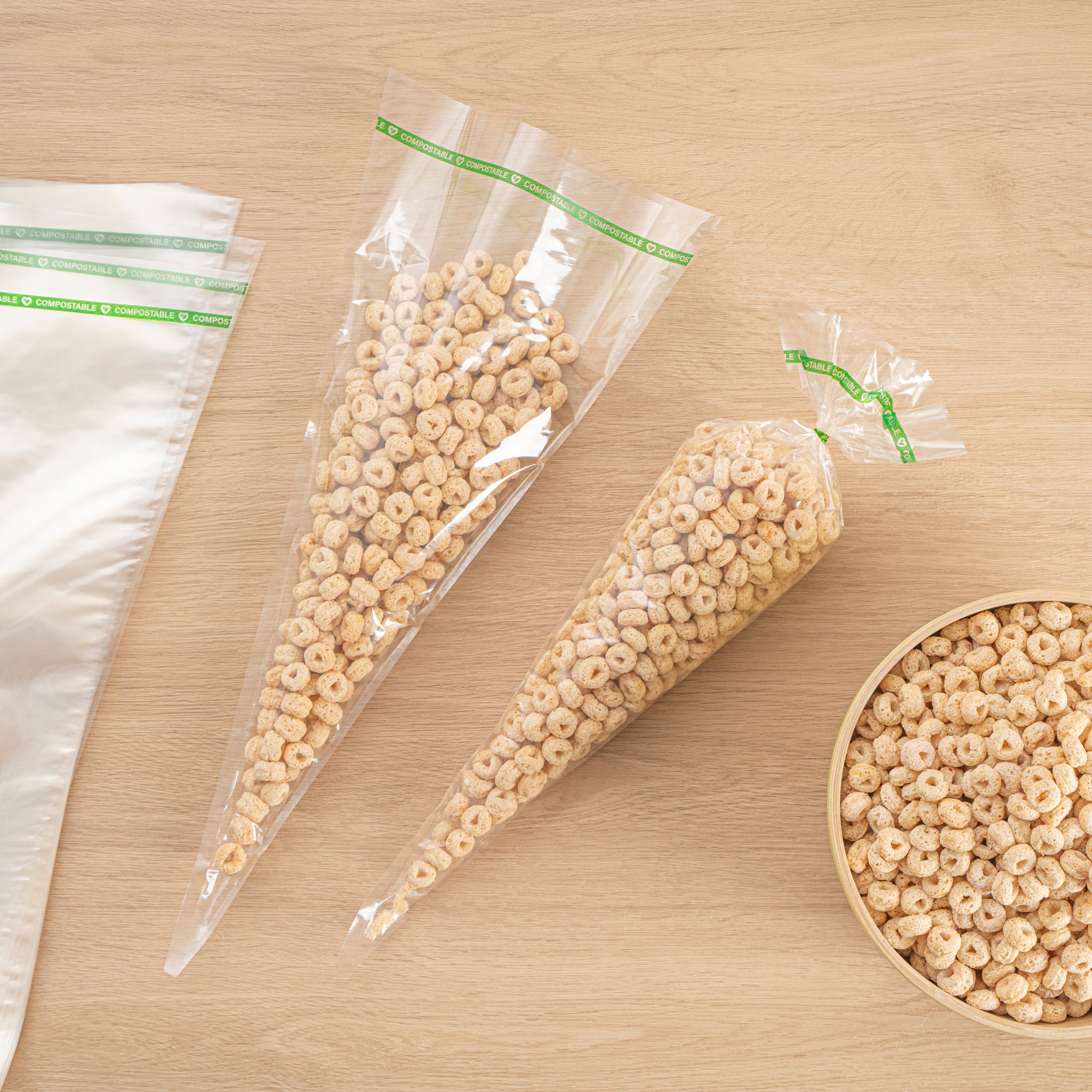 BASIC NATURE CLEAR PLASTIC CONE BAG - COMPOSTABLE, HIGH CLARITY