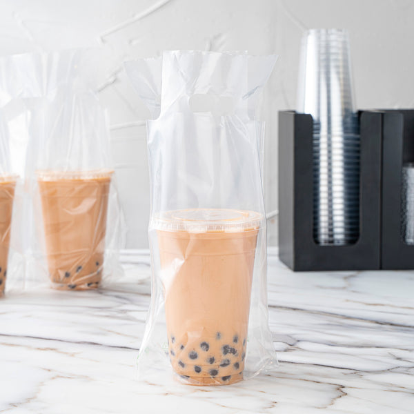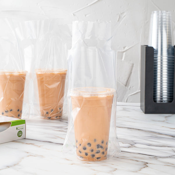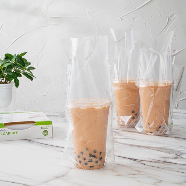 From extra large sodas to small natural juices, our disposable drink bags are designed to hold beverages of multiple sizes, including 9-,12-,16-, or 20-ounce cups. Make all sorts of drinks easily portable!