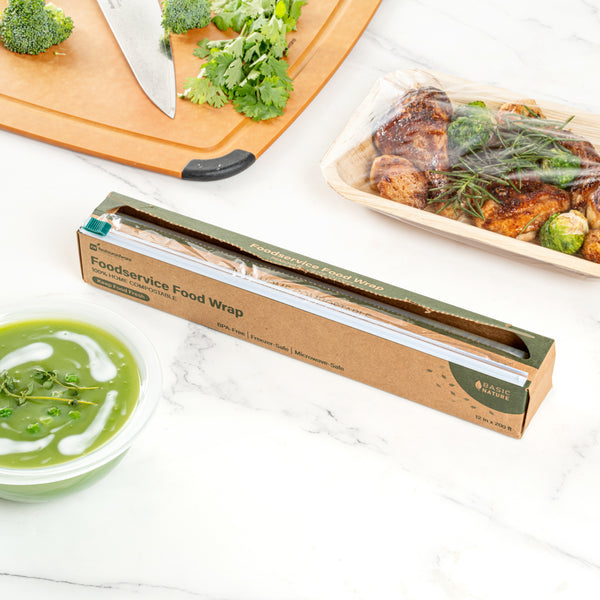 Basic Nature Clear Plastic Foodservice Food Wrap - Home Compostable, BPA-Free, Microwave-Safe - 12
