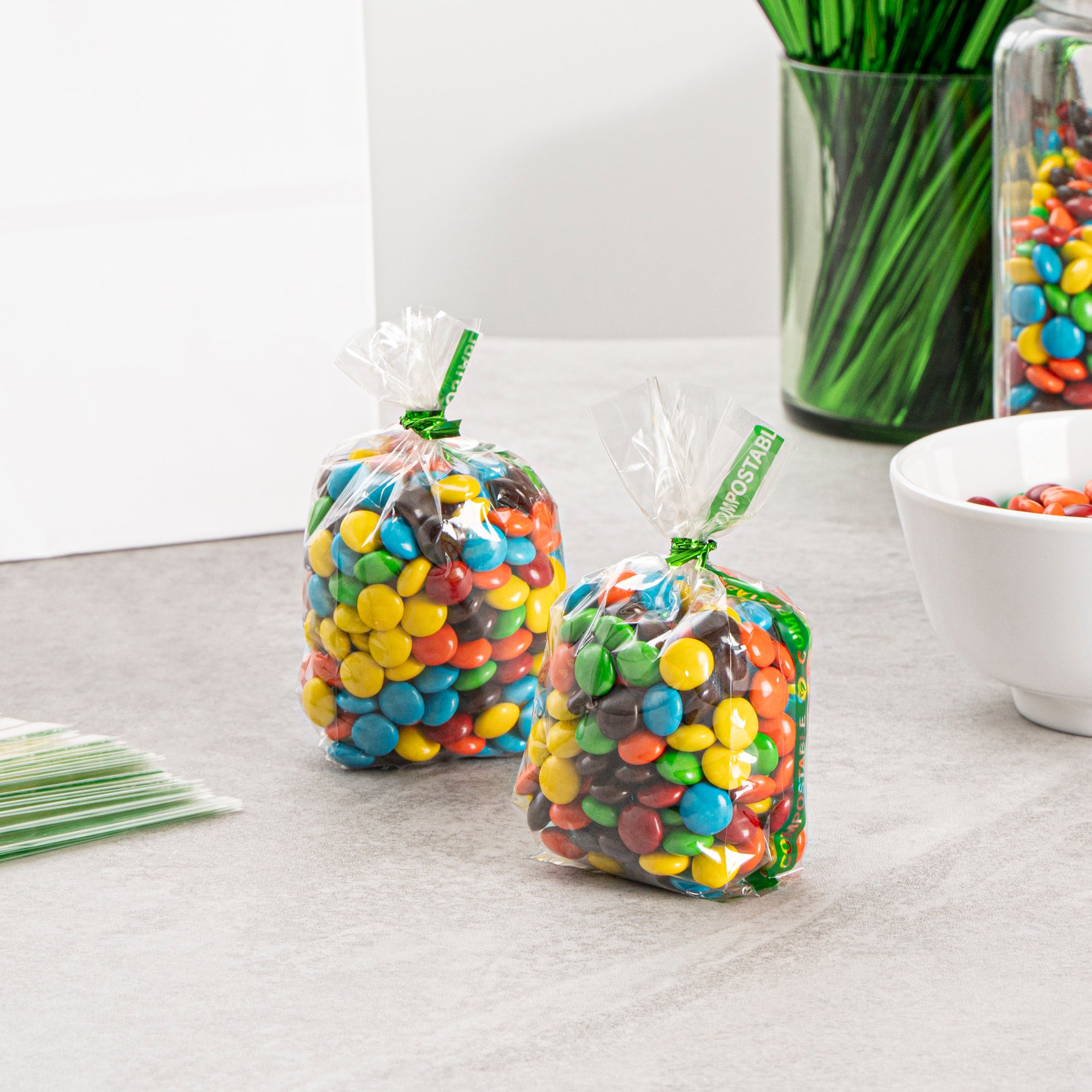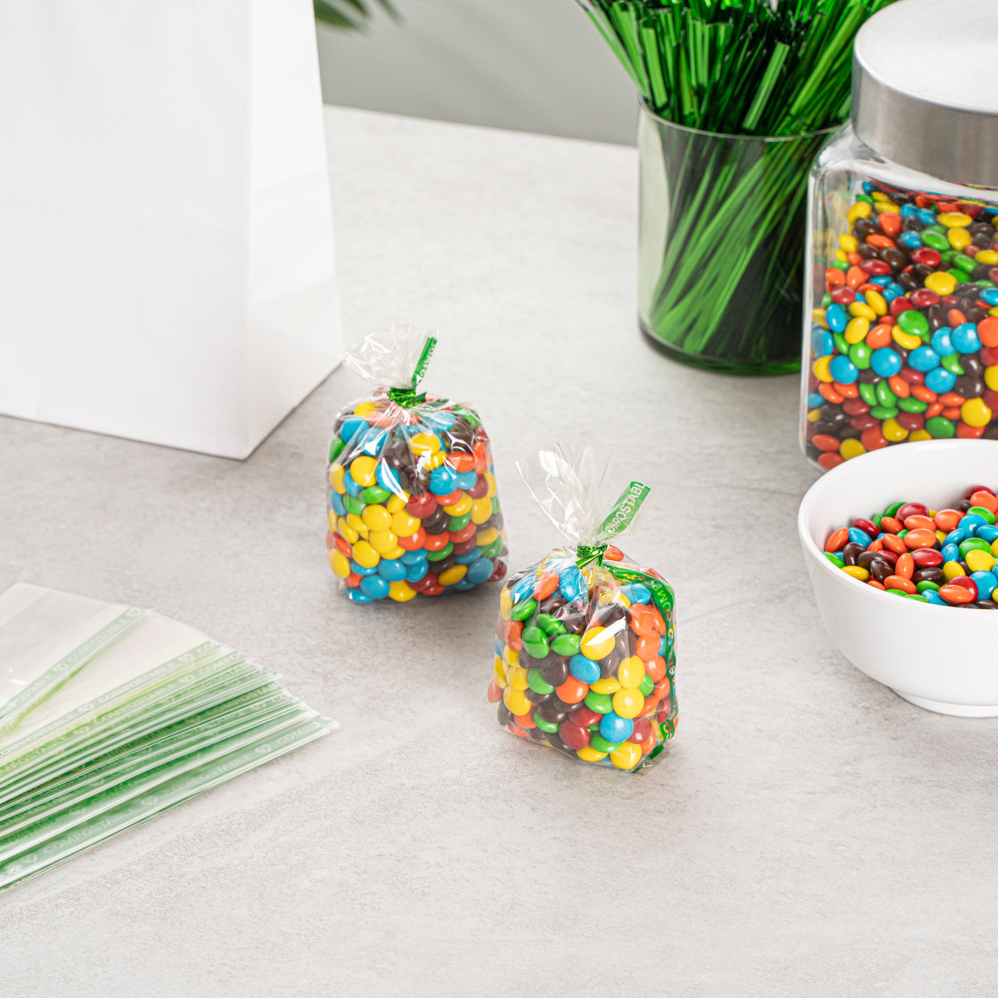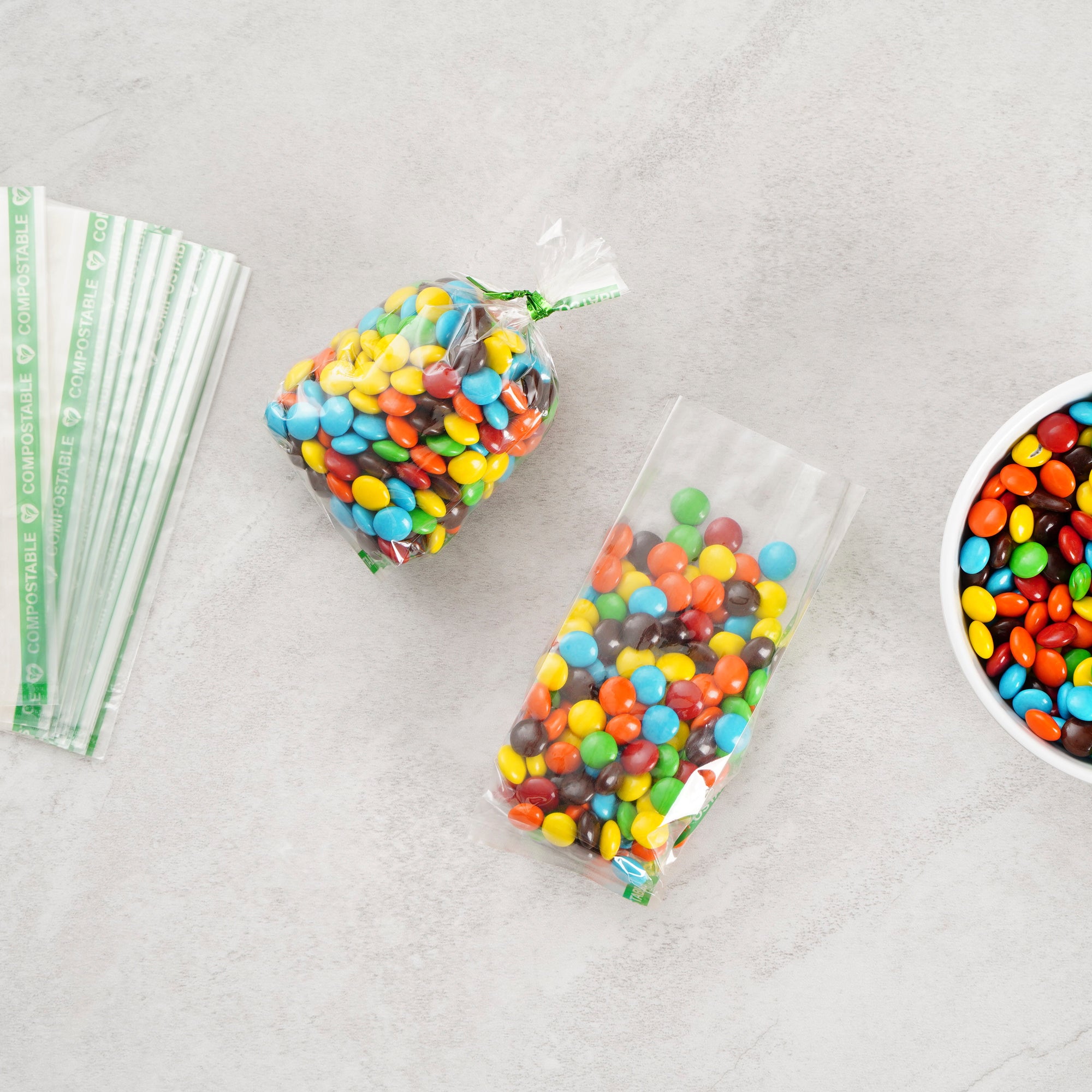 Enhance your product presentation with eco-friendly packaging. Basic Nature Compostable Clear Cellophane Bags feature a home compostable material that reduces landfill waste, perfect for environmentally conscious operations. These clear cellophane bags showcase a high gloss finish, elevating the display of your candies or samples with a premium appearance. With a compact size of 2 inches by 1 inch by 5 inches, these compostable gusset bags are ideal for packaging small items, while their heat-sealable design ensures a secure closure that maintains freshness. Made from renewable wood pulp, these heat sealable clear bags are freezer-safe and suitable for cold food applications, allowing for extended storage without compromising quality. Ideal for bakeries, candy shops, and catering services, these bags support sustainable initiatives without sacrificing style or functionality. Each order includes 100 Basic Nature Compostable Clear Cellophane Bags.