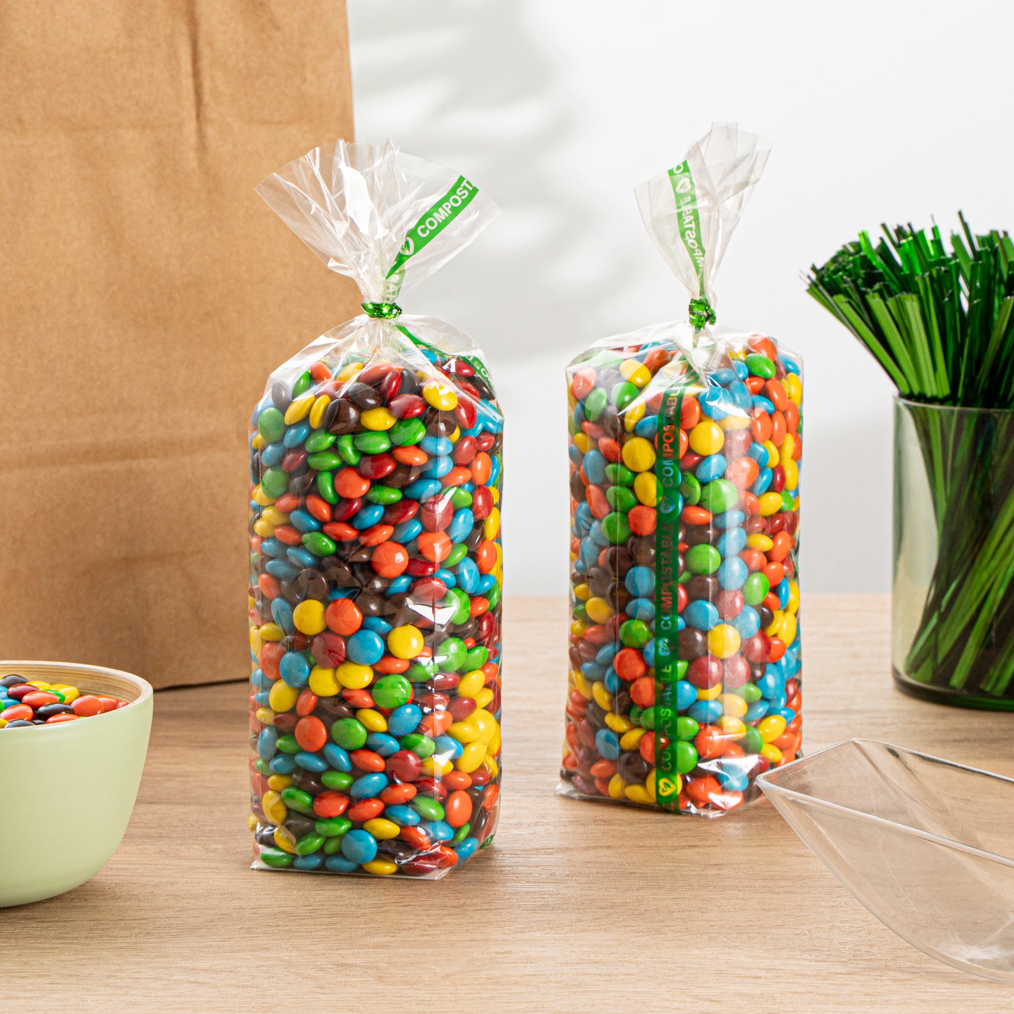 Provide an eco-conscious and stylish solution for bread packaging with our Basic Nature Clear Plastic Gusset Bags. These compostable bread bags are crafted from eco-conscious plastic cellophane, ensuring that your homemade bread stays fresh while being conscious of the environment. These bread packaging bags guarantee that your baked goods remain uncontaminated and wholesome. These wicker poly bags feature a dispenser that makes handling and storing bread loaf bags effortless. This unique bread freezer bag is heat sealable, providing a secure seal to keep your bread fresh even in freezer conditions. With a clear finish, these plastic bread bags showcase your delicious creations while offering easy product identification. Measuring 2.01 inches in length by 2.01 inches in width by 8.27 inches in height, these bread-freezer bags are perfectly sized for various types of baked goods. Sold in a 100 count box.