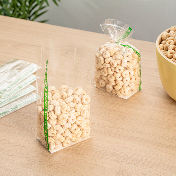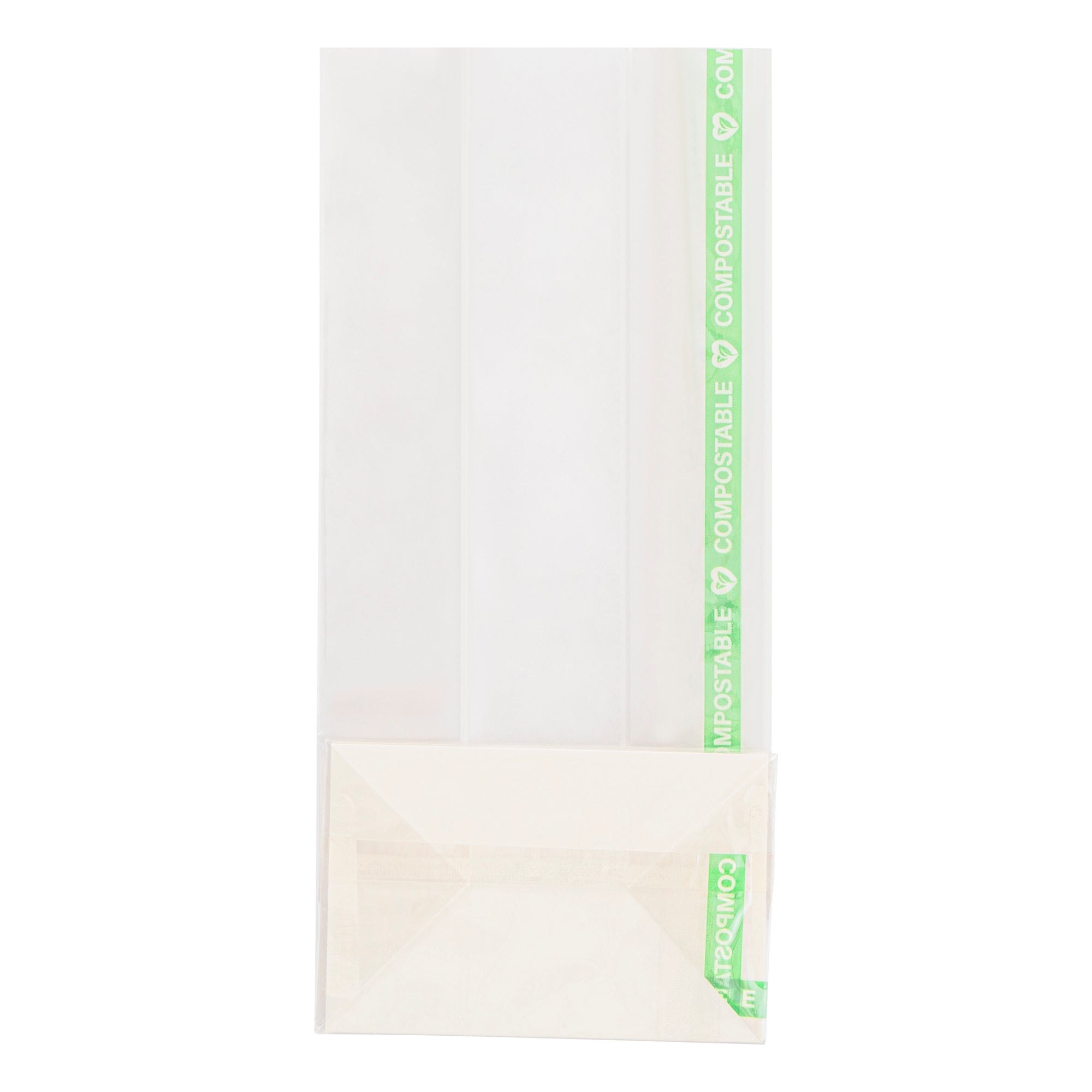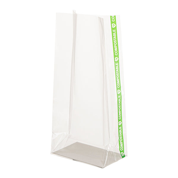 BASIC NATURE CLEAR PLASTIC GUSSET BAG - COMPOSTABLE, HEAT SEALABLE