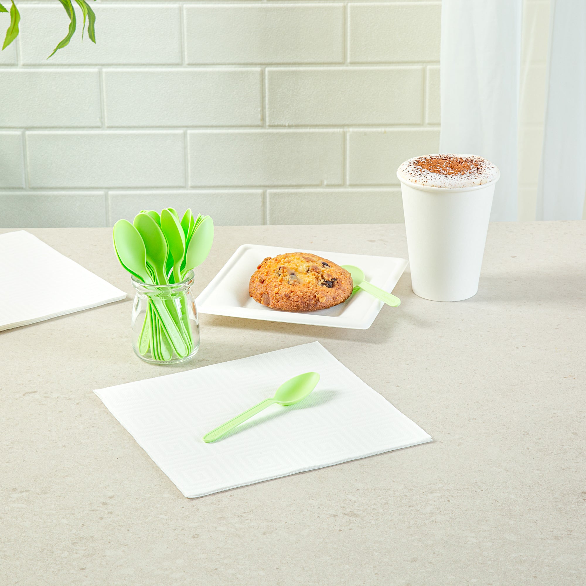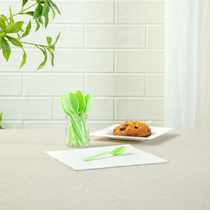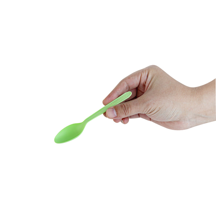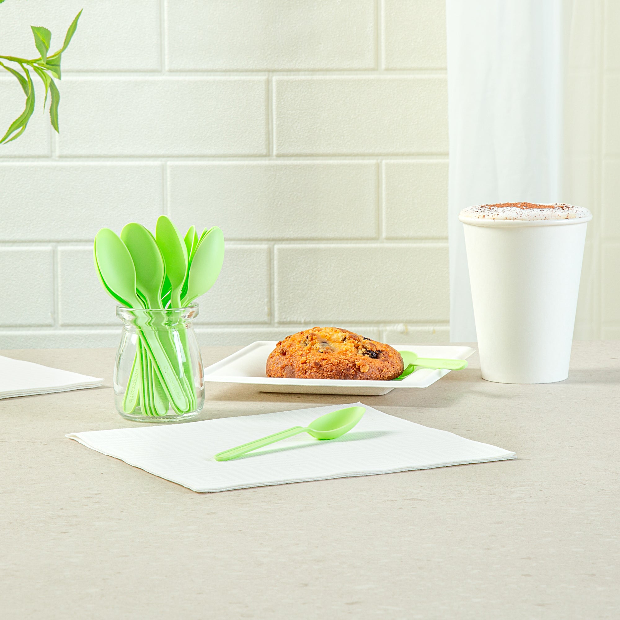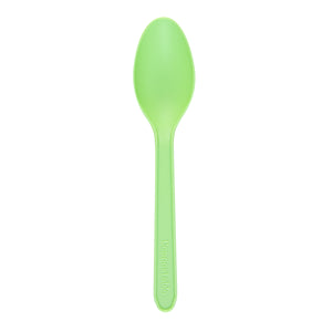 GREEN CPLA PLASTIC DESSERT SPOON - HEAT-RESISTANT, COMPOSTABLE