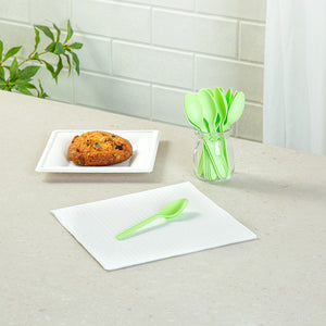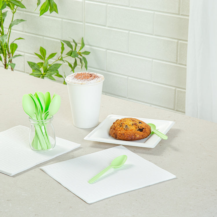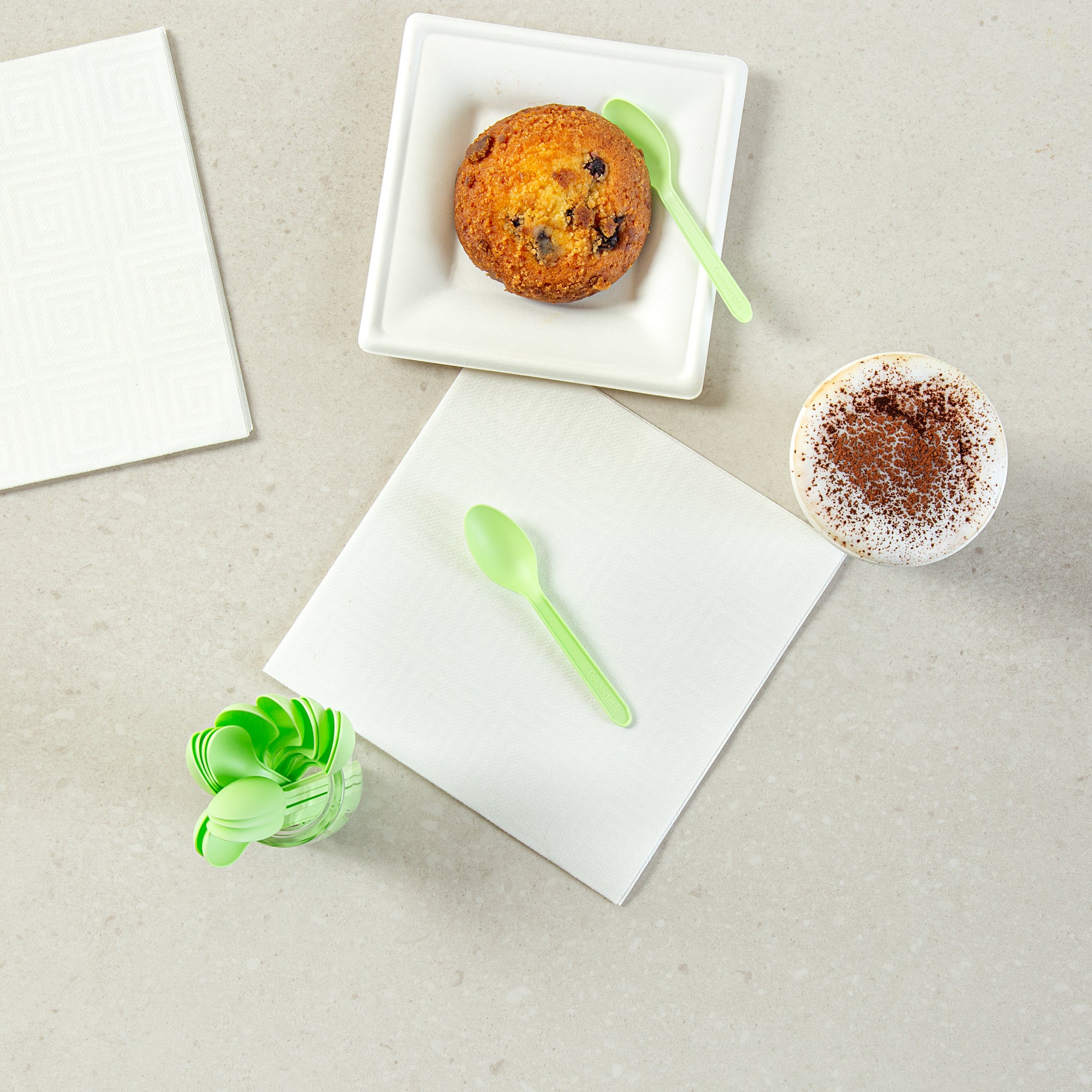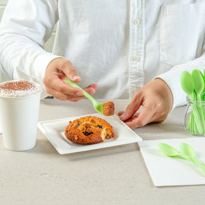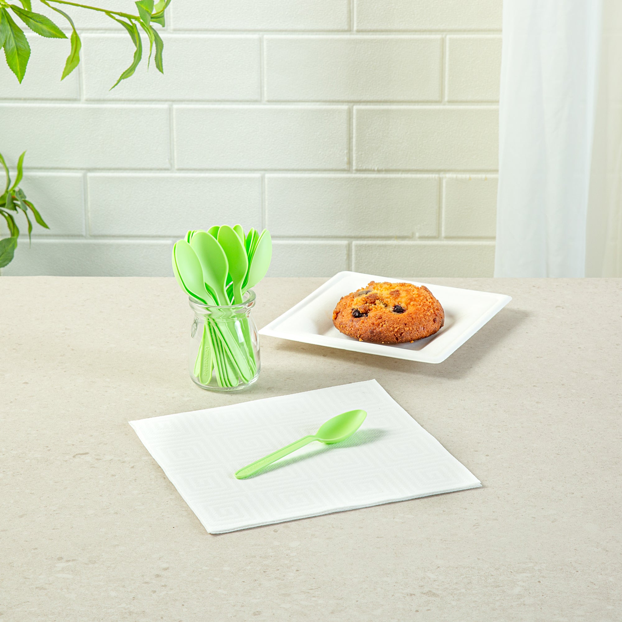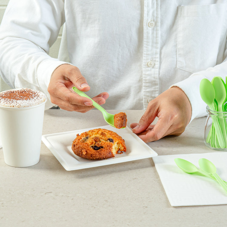 GREEN CPLA PLASTIC DESSERT SPOON - HEAT-RESISTANT, COMPOSTABLE