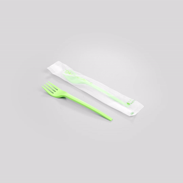GREEN CPLA PLASTIC FORK - COMPOSTABLE WRAPPER, HEAT-RESISTANT
