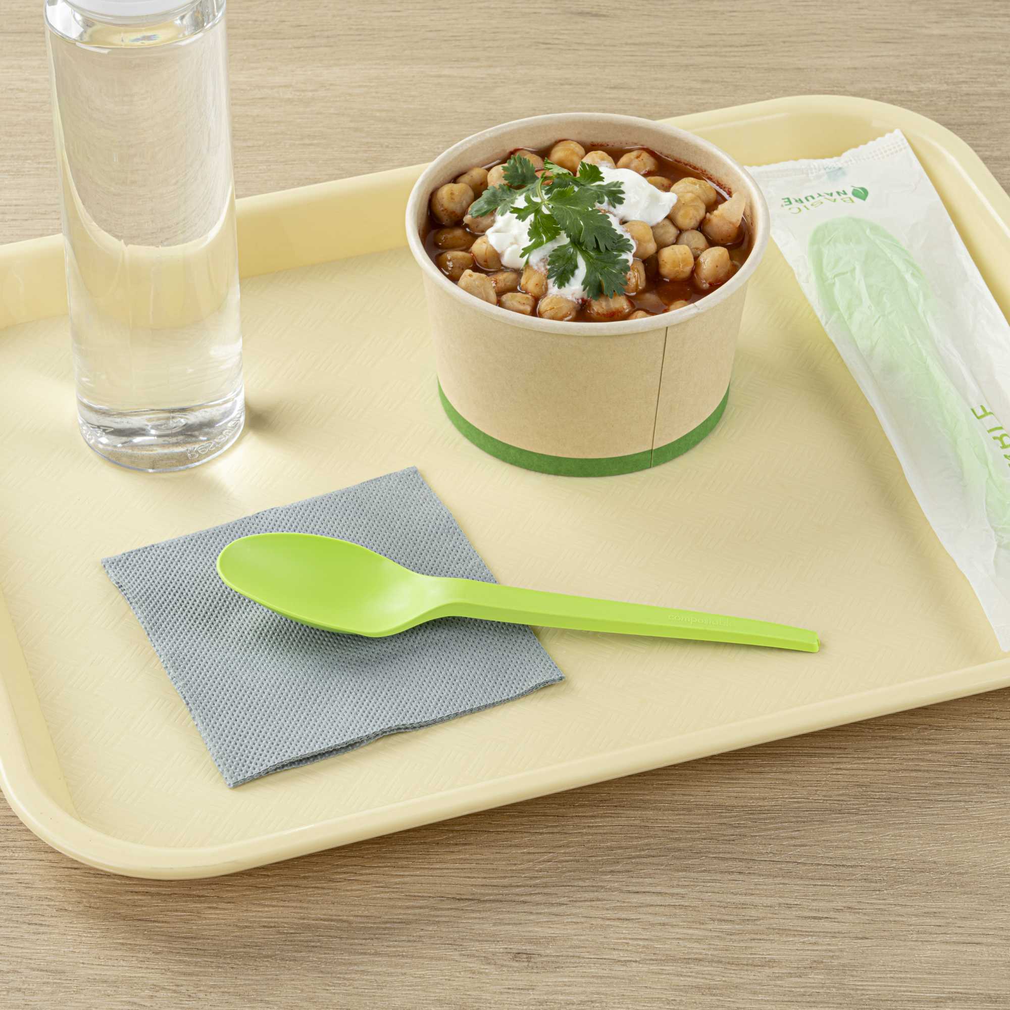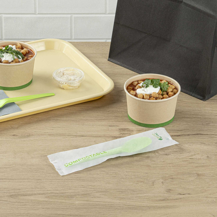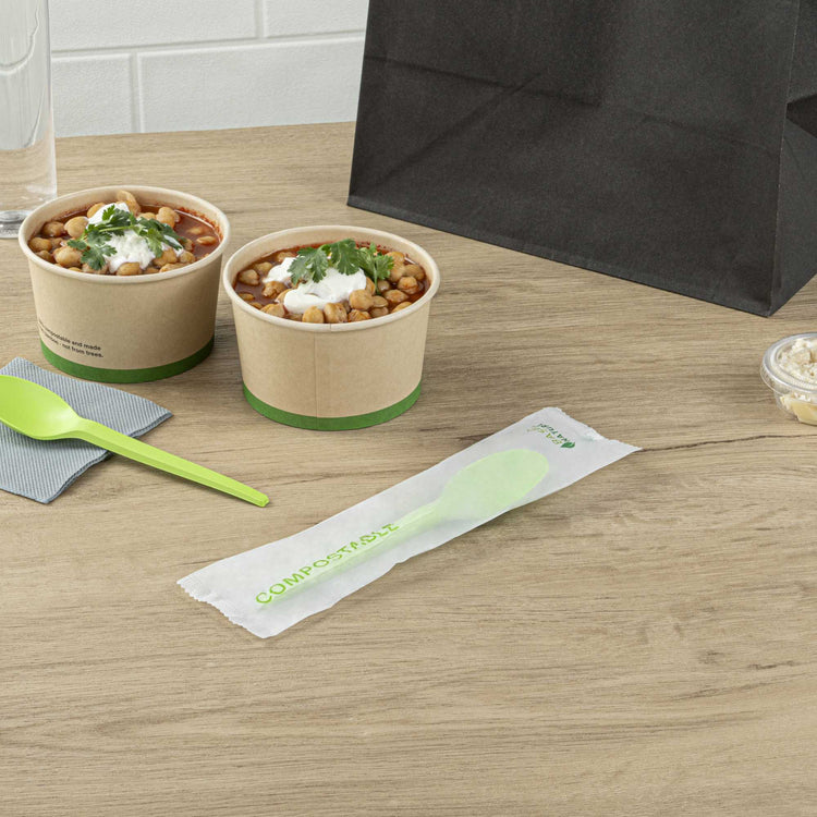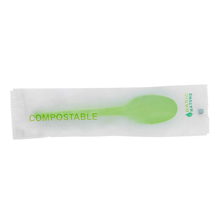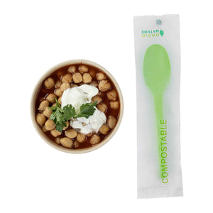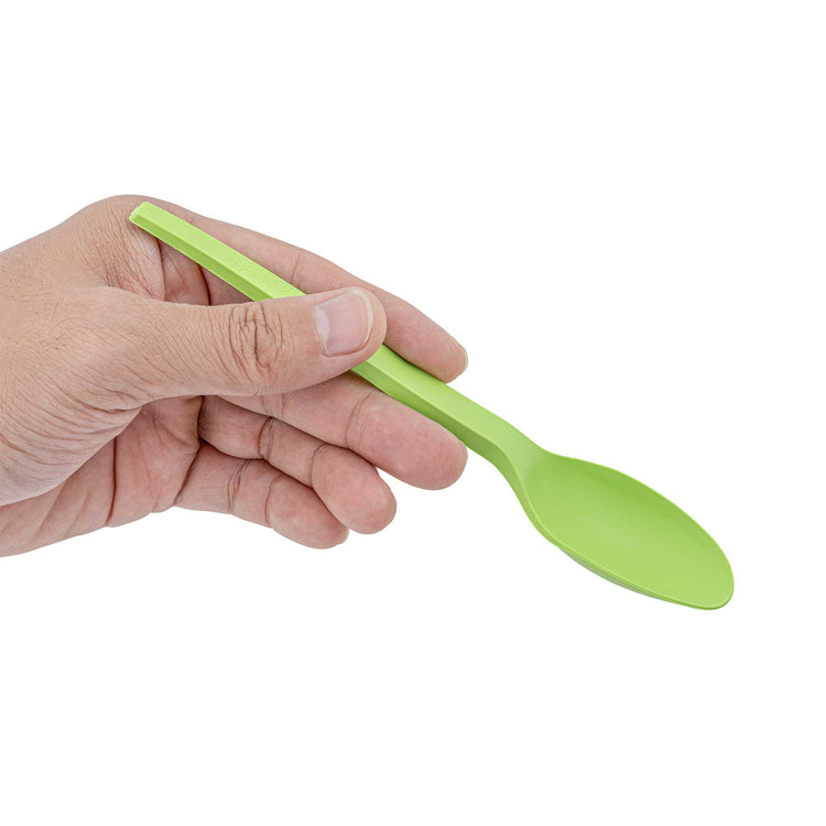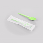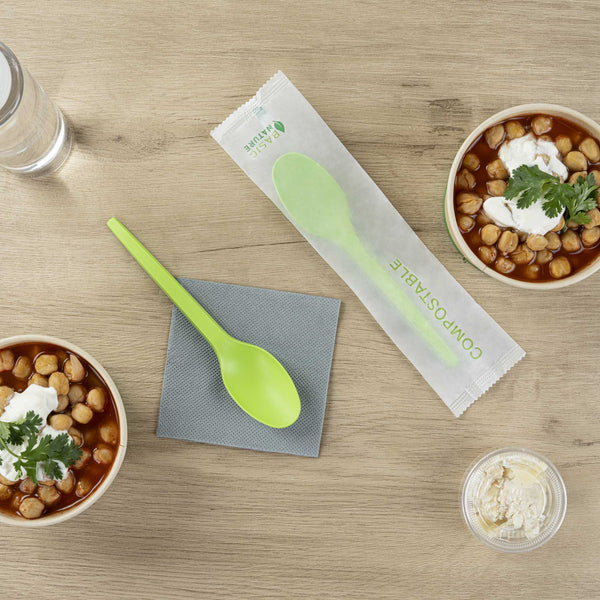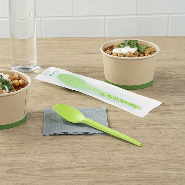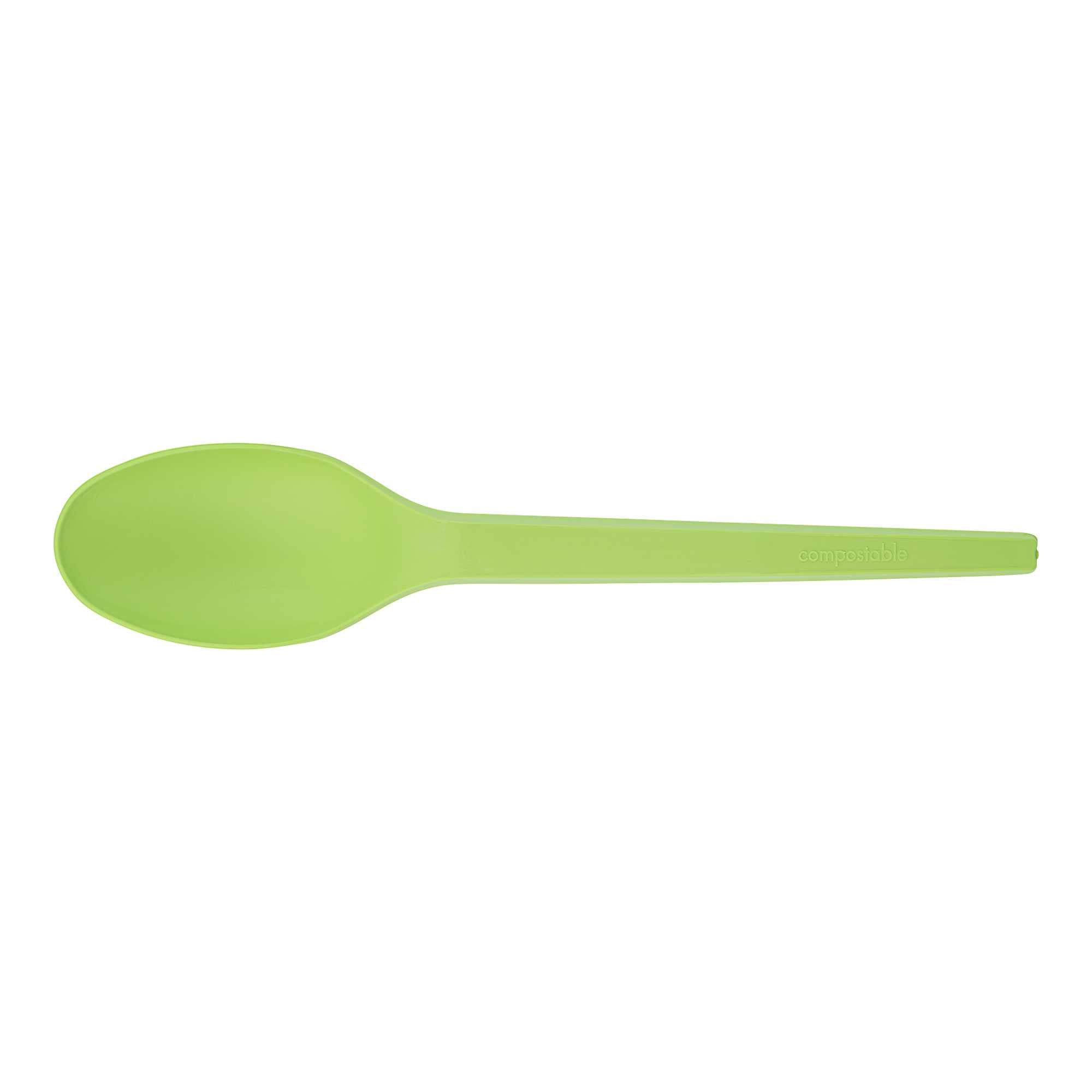 GREEN CPLA PLASTIC SPOON - COMPOSTABLE WRAPPER, HEAT-RESISTANT