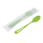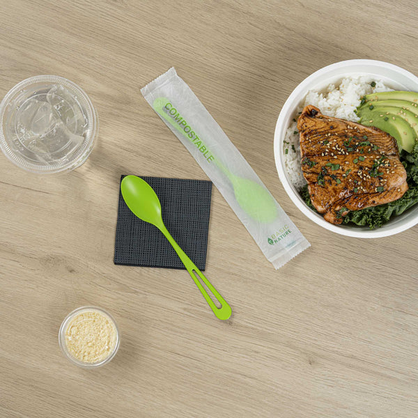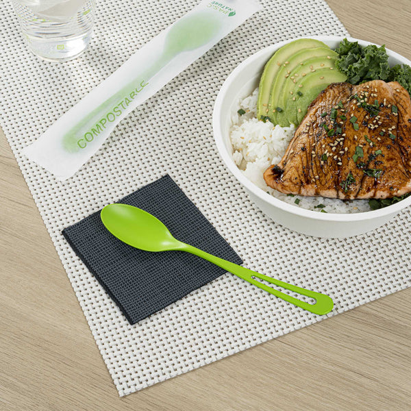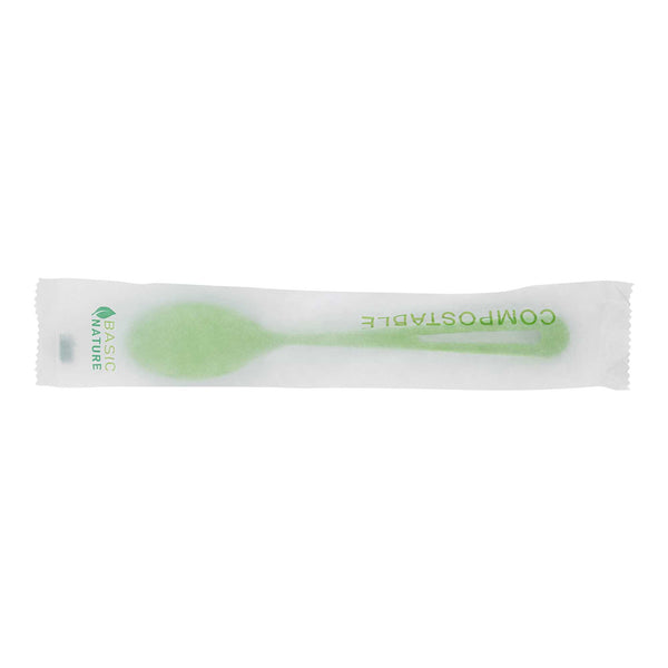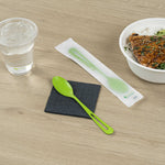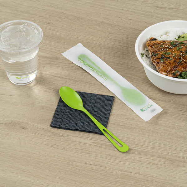 GREEN CPLA PLASTIC SPOON - COMPOSTABLE WRAPPER, HEAT-RESISTANT