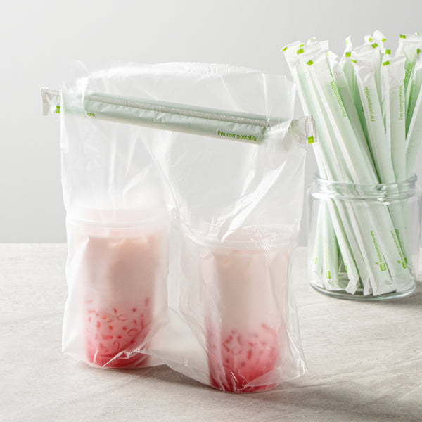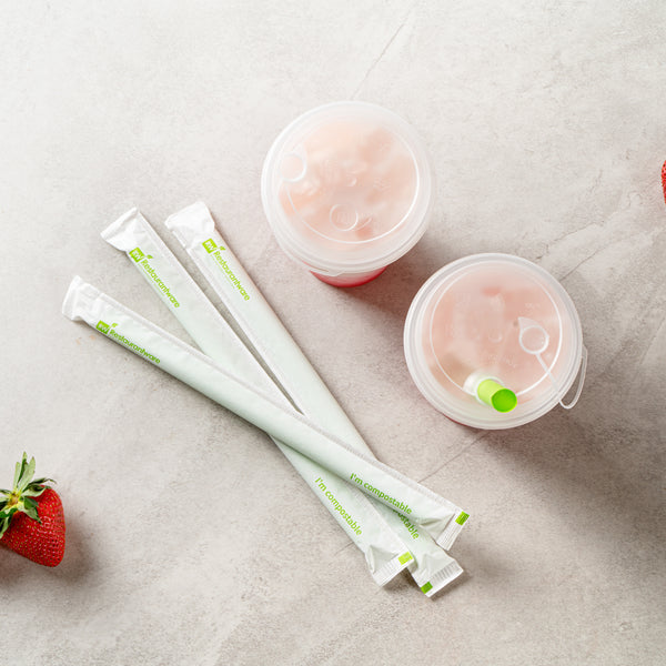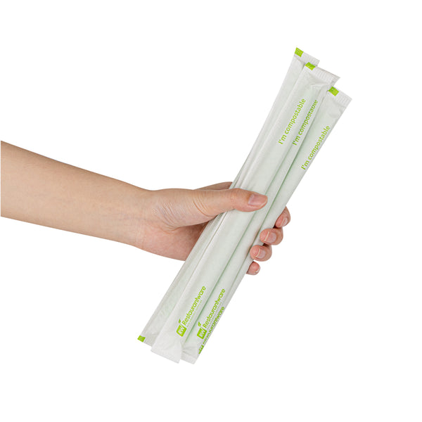 GREEN PLA PLASTIC / PBAT PLASTIC BOBA STRAW - WRAPPED, COMPOSTABLE