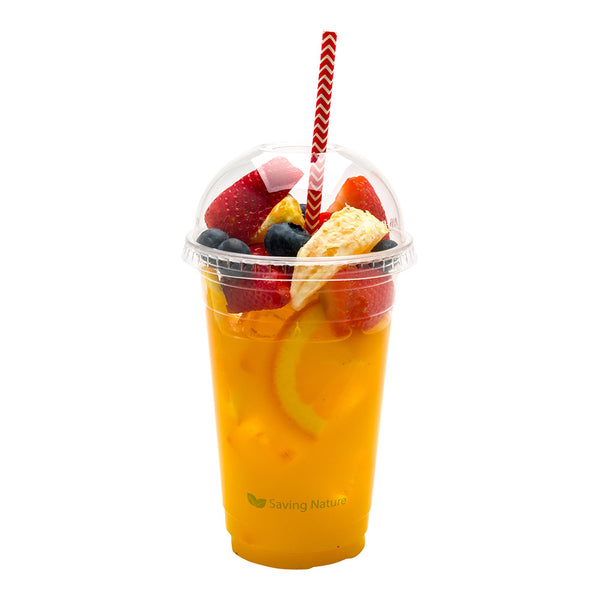 Easily seal delicious treats or cold beverages to go with our Basic Nature Round Clear PLA Plastic Drinking Cup Dome Lids. Made from PLA plastic, a plant-based bioplastic, these plastic drink lids are commercially compostable and biodegradable, providing your establishment with a sustainable way to serve snacks or refreshments. These dome lids give your customers plenty of room to add cherries, whipped cream, chocolate shavings, and other flavorful toppings to their favorite treats. With a built-in straw slot, these clear lids allow customers to comfortably enjoy tasty drinks on the go while averting accidental spills. Featuring a clear finish, these drinking lids brilliantly showcase the vibrant colors of your juice, lemonade, iced coffee, and other flavorful beverages. These lids are specially designed to form a secure fit on our 20-ounce PLA cups (SKU: RWP0165C). Measuring 4 inches in diameter and 1.8 inches in height, these disposable lids are ideal for your beverage takeaway orders. Shipped in a 100 count box. This item will only degrade outside of the traditional solid waste stream. PLA drinking cups are available and sold separately. NOTE: Store and use under 105F. Avoid prolonged exposure to direct sunlight. Suitable for cold food items only.
