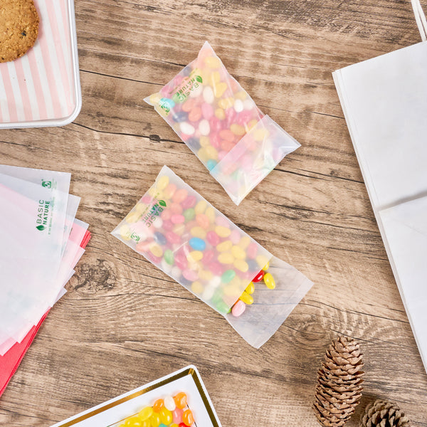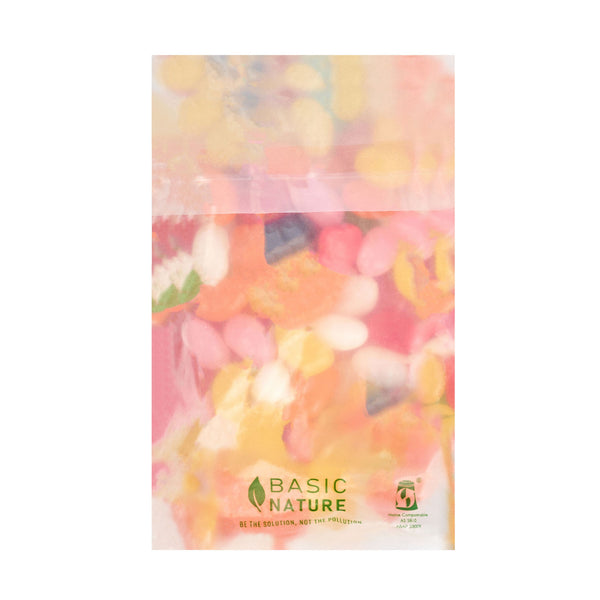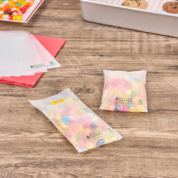 Reduce foodservice waste with compostable storage solutions. Basic Nature BPI-Certified Compostable Food Storage Bags offer a compostable design that efficiently minimizes environmental impact. These resealable bags are perfect for storing leftovers and snacks, and their freezer-safe feature ensures the freshness of your chilled ingredients, making them essential for busy kitchens. Made from BPA-free plastic, these bags guarantee safe food storage, protecting your ingredients from harmful chemicals. Measuring 5 inches in length, 3 inches in width, these bags are translucent, allowing you to quickly identify contents at a glance. Stock up on these indispensable freezer-safe bags to streamline your kitchen operations. Each order includes 100 Basic Nature Compostable Food Storage Bags.