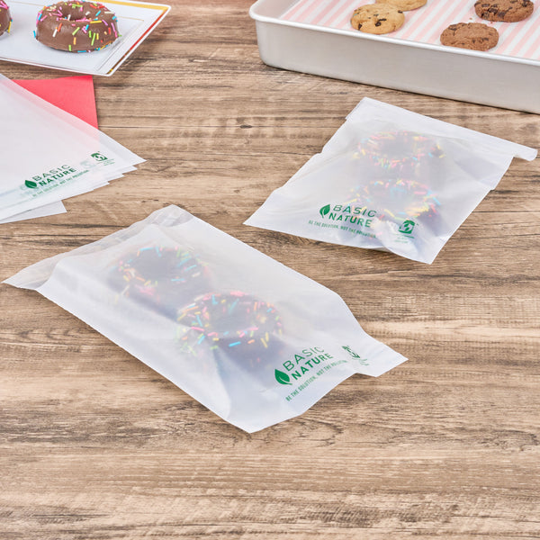 Reduce your carbon footprint with food storage solutions. Basic Nature BPI-Certified Compostable Food Storage Bags offer a sustainable alternative to traditional plastic bags. These compostable food storage bags are made from compostable materials, allowing you to significantly cut down on waste disposal costs. With dimensions of 9 inches in length and 6 inches in width, they are perfectly sized for various kitchen needs. Their freezer-safe construction ensures that your food remains fresh and retains its quality for longer periods, ideal for preserving ingredients in commercial kitchens. Crafted from translucent plastic, these bags are BPA-free, providing peace of mind for safe food handling. Make a positive impact by maintaining operational efficiency with these resealable storage bags. Each order includes 100 Basic Nature Compostable Food Storage Bags.