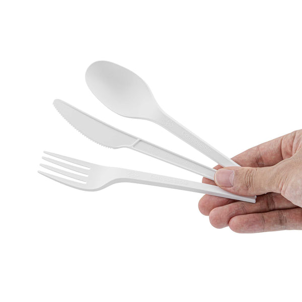 Each of our plastic cutlery utensils is shipped in a variety of sizes and count boxes for you to choose your favorite. These cornstarch utensils come in handy for significant events such as birthday parties, holiday dinners, picnics, and more.