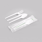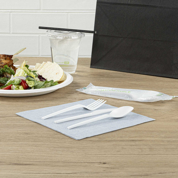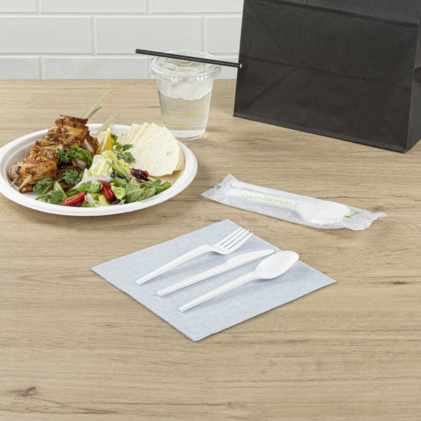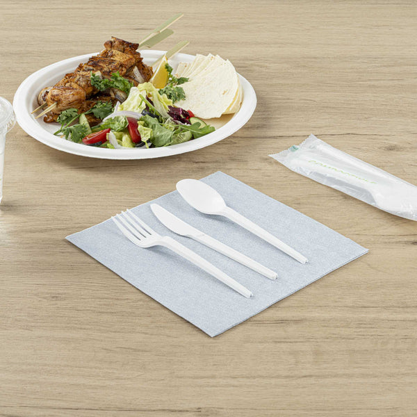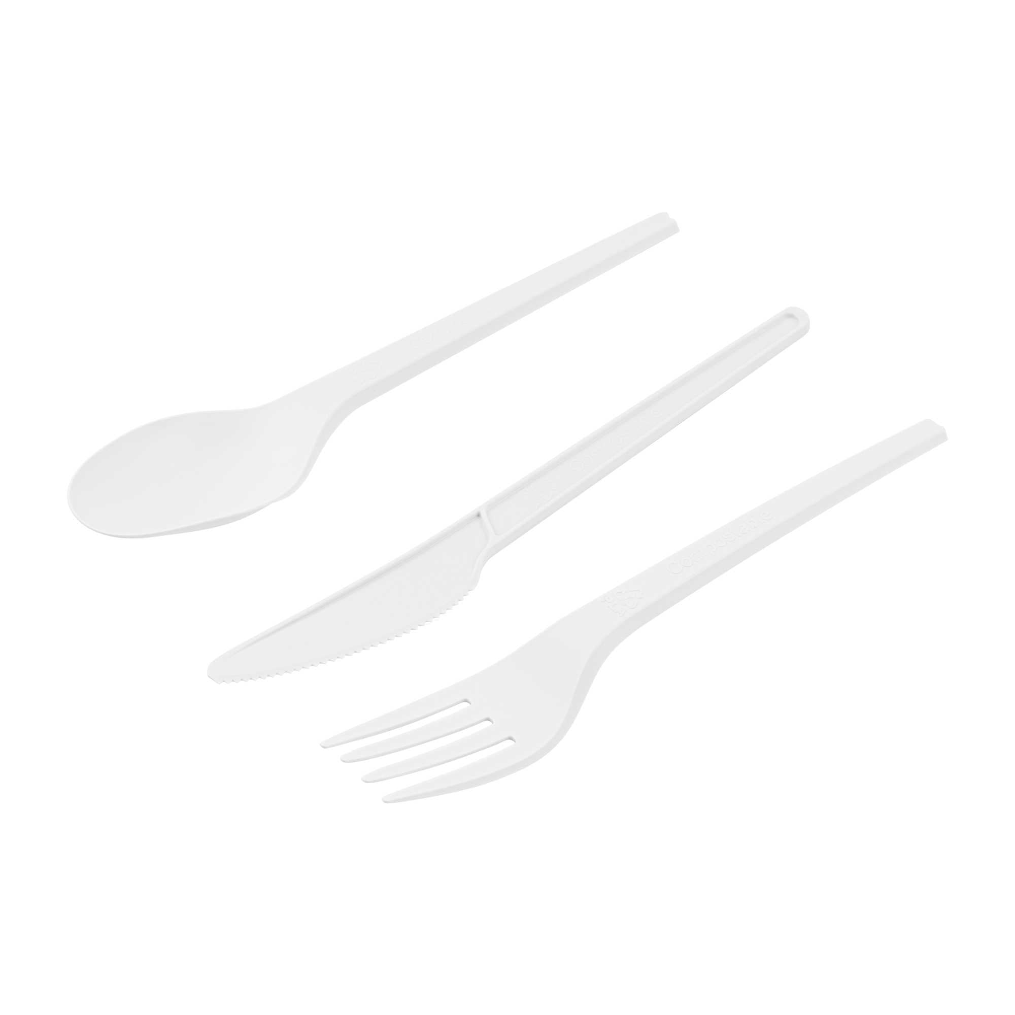 WHITE CPLA PLASTIC CUTLERY SET - COMPOSTABLE WRAPPER, HEAT-RESISTANT