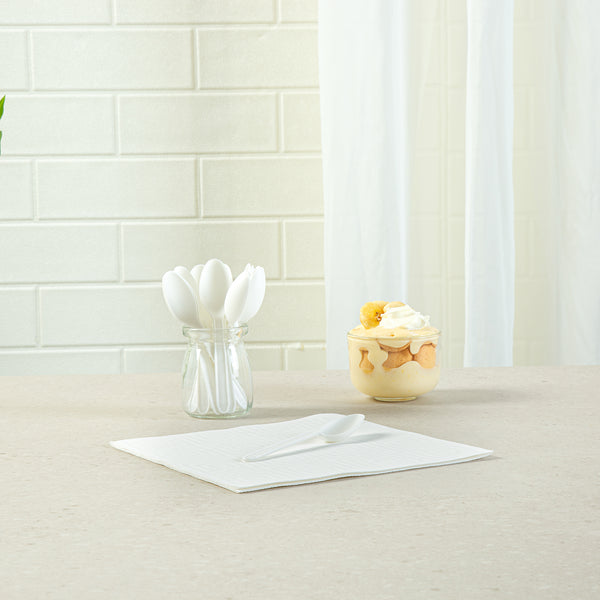 WHITE CPLA PLASTIC DESSERT SPOON - HEAT-RESISTANT, COMPOSTABLE