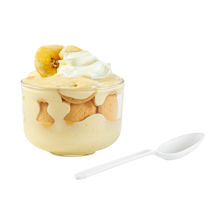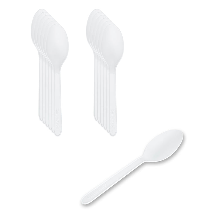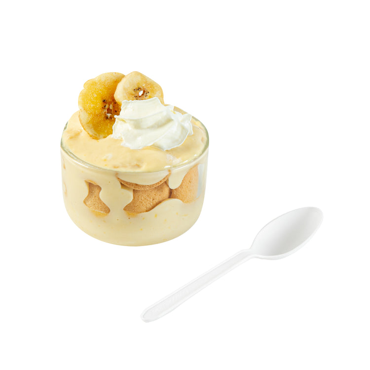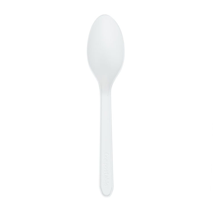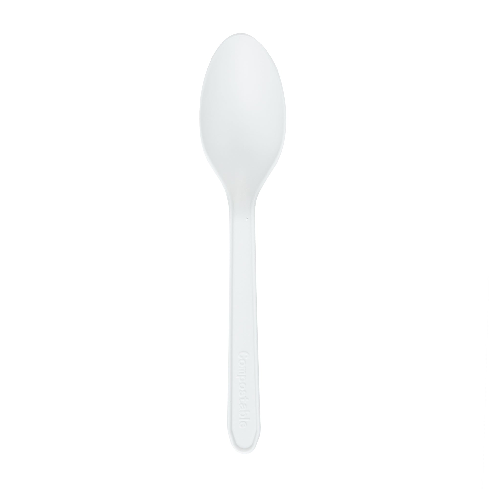 WHITE CPLA PLASTIC DESSERT SPOON - HEAT-RESISTANT, COMPOSTABLE