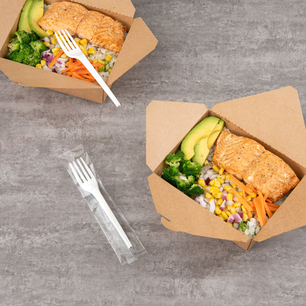 WHITE CPLA PLASTIC FORK - WRAPPED, HEAT-RESISTANT, COMPOSTABLE