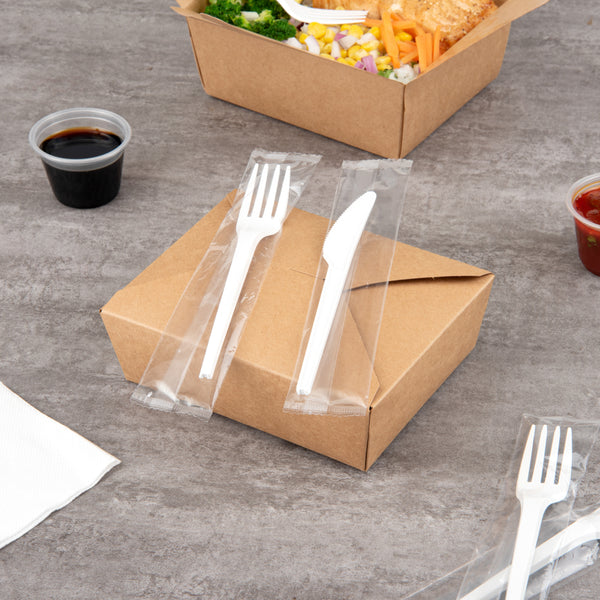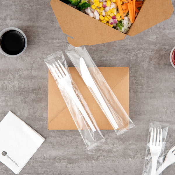 Choose from our individual forks, spoons, knives, or cutlery kits with napkins to easily set tables and clean up after meals. With our wrapped sets, every guest will have sanitary untensils.