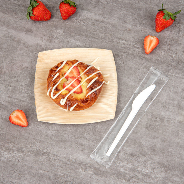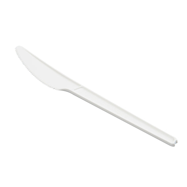 WHITE CPLA PLASTIC KNIFE - WRAPPED, HEAT-RESISTANT, COMPOSTABLE