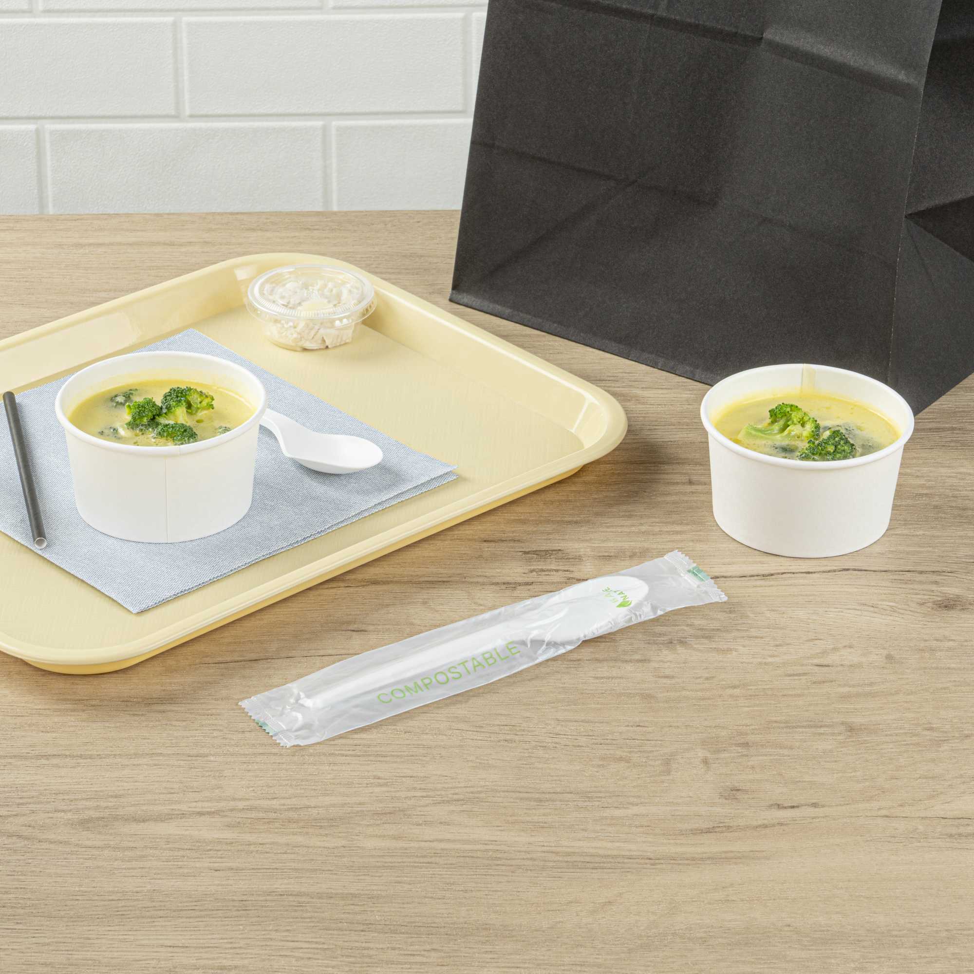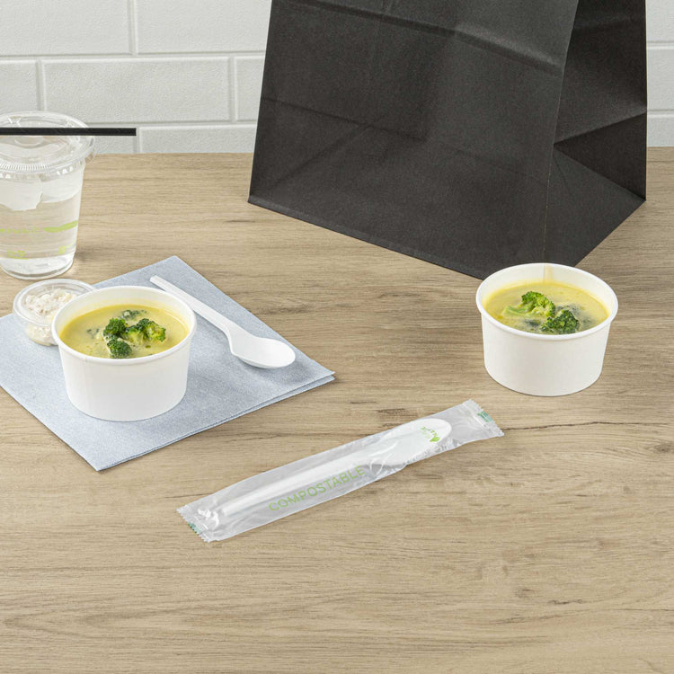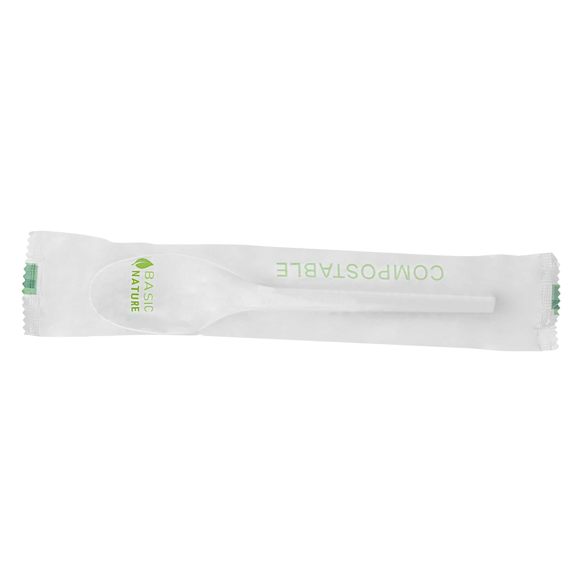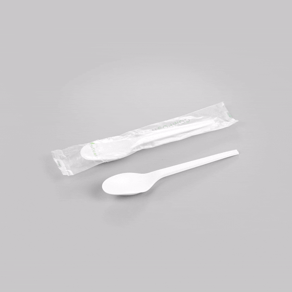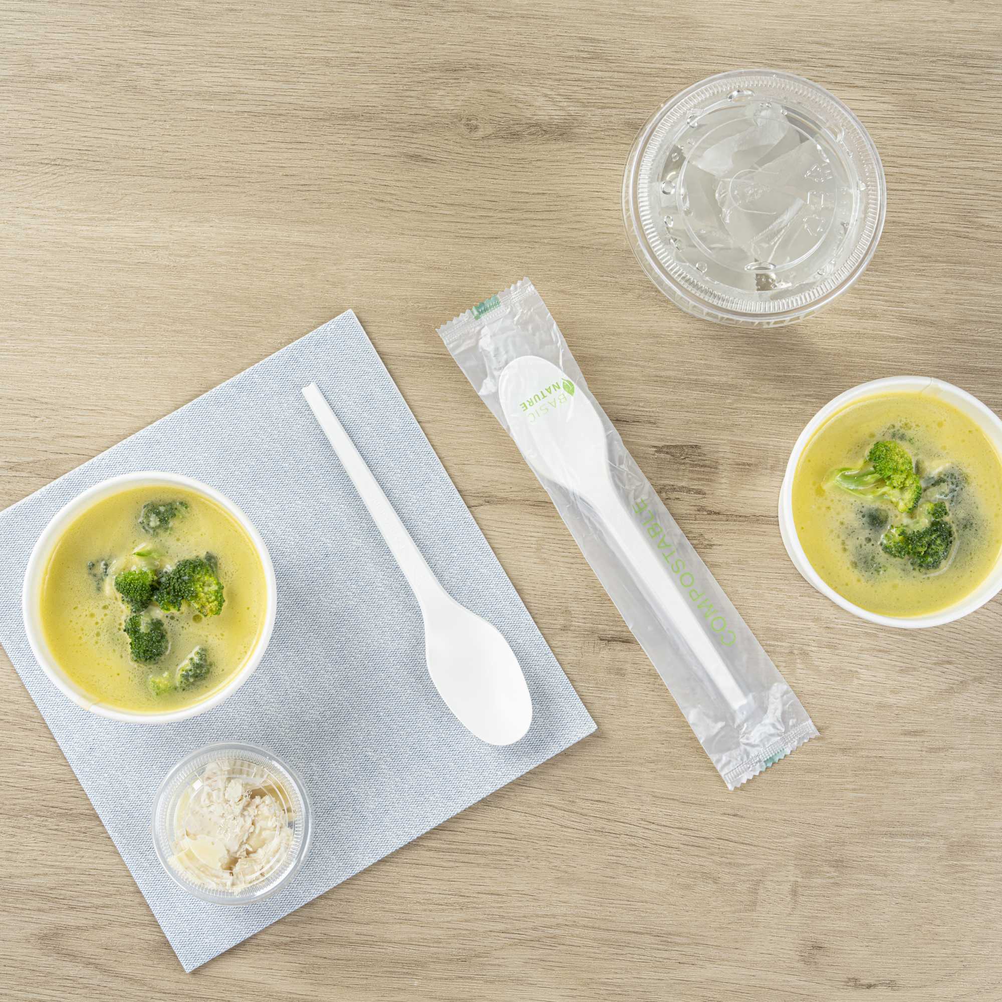 WHITE CPLA PLASTIC SPOON - COMPOSTABLE WRAPPER, HEAT-RESISTANT