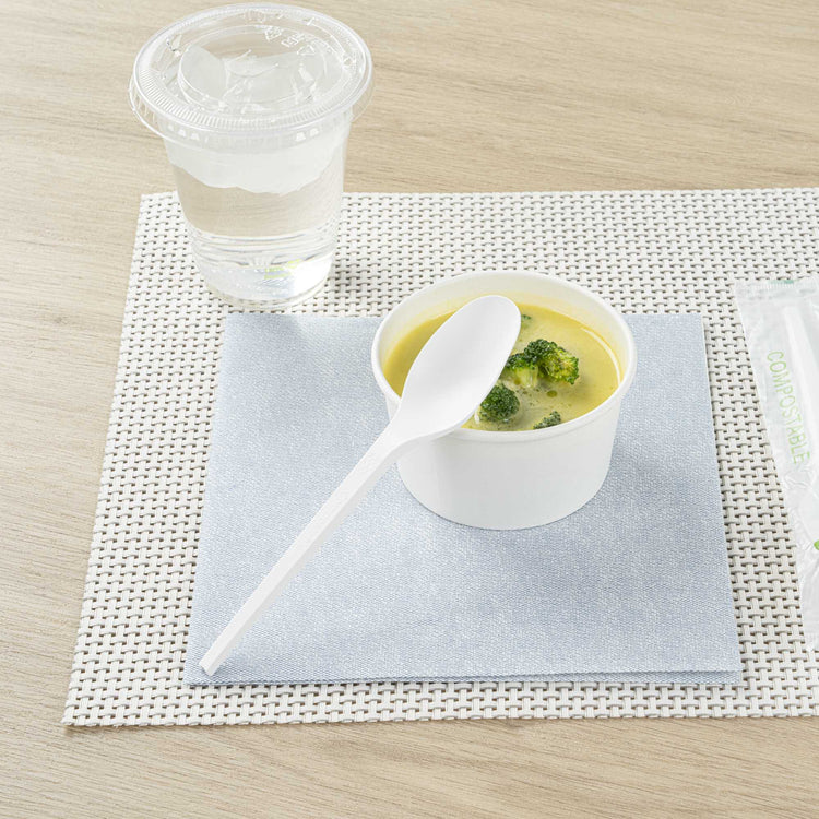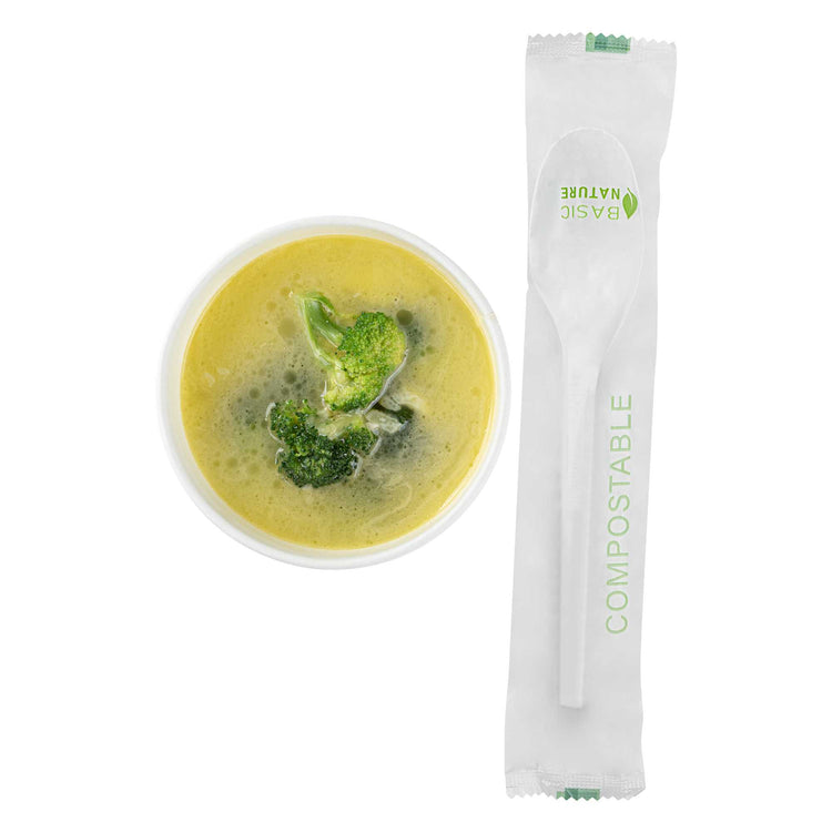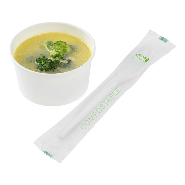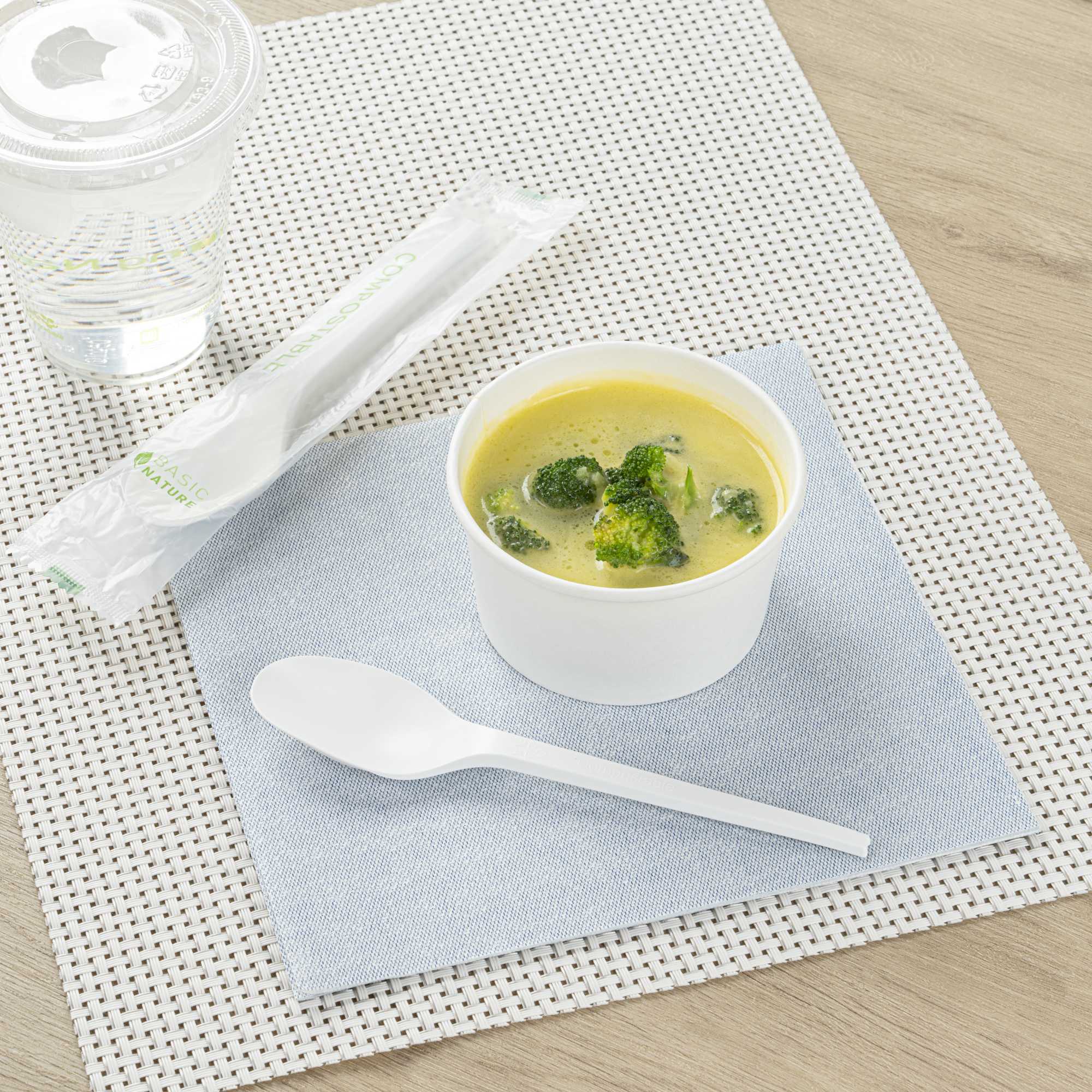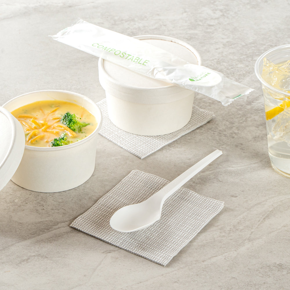 WHITE CPLA PLASTIC SPOON - COMPOSTABLE WRAPPER, HEAT-RESISTANT