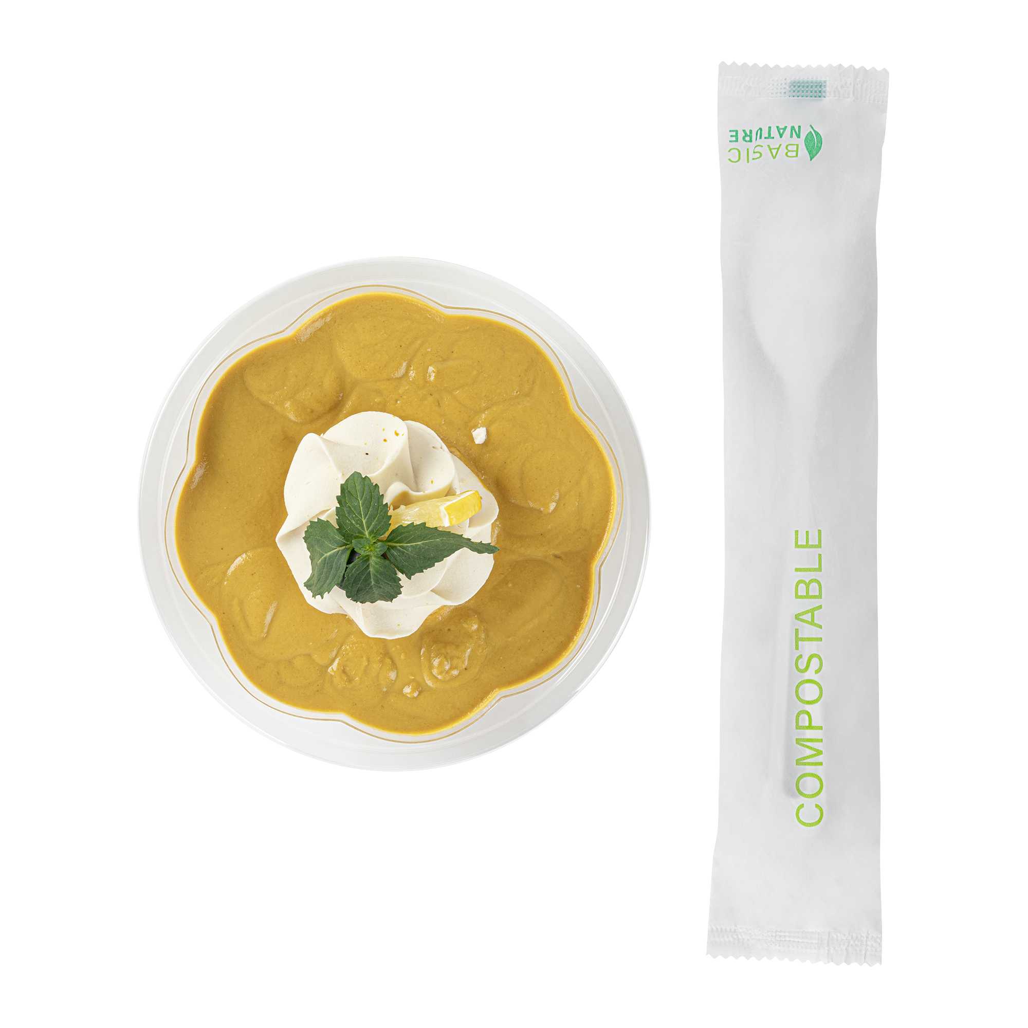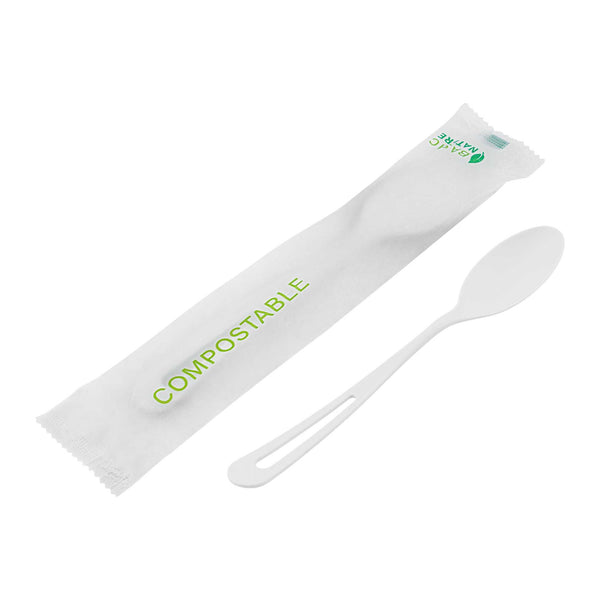 WHITE CPLA PLASTIC SPOON - COMPOSTABLE WRAPPER, HEAT-RESISTANT