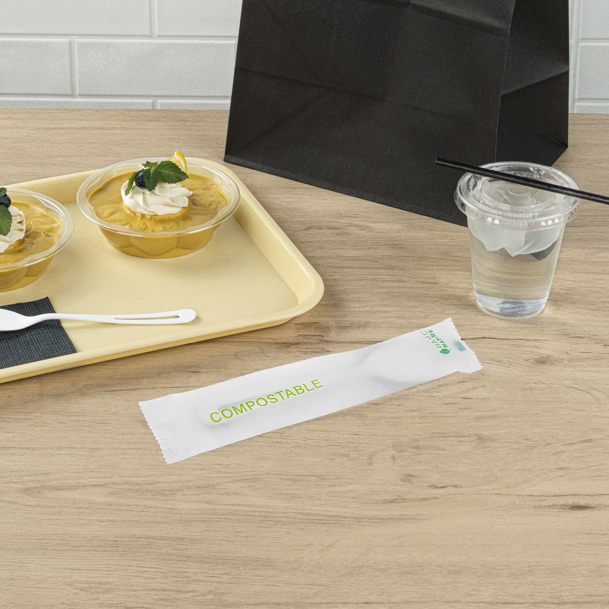 Made from PLA, a cornstarch-based bioplastic, these utensils are compostable with BPI certitifcation. Designed with an embossed Compostable message to remind guests of the correct way to dispose of these utensils.