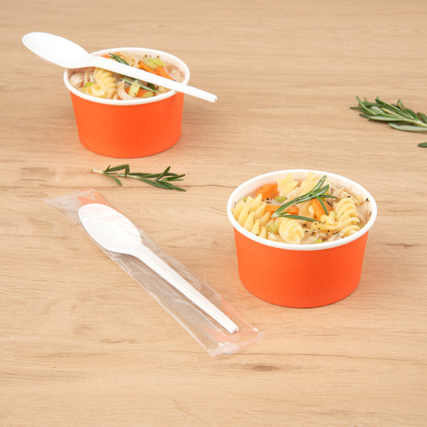 WHITE CPLA PLASTIC SPOON - WRAPPED, HEAT-RESISTANT, COMPOSTABLE