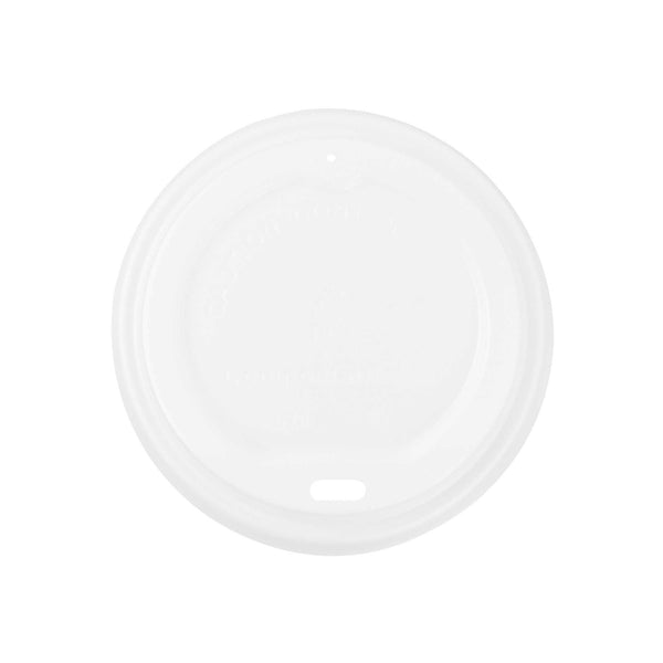 WHITE PLA COFFEE CUP LID - FITS 8, 12, 16 AND 20 OZ, COMPOSTABLE