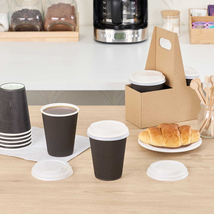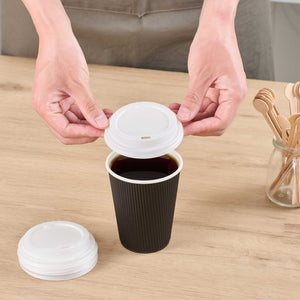 Premium plastic lids snugly fit on coffee cups without splitting and won’t break while in use. No more coffee stains or spills on your clothes!