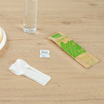 WHITE PLA PLASTIC CUTLERY SET - WITH NAPKIN AND SALT / PEPPER PACKETS
