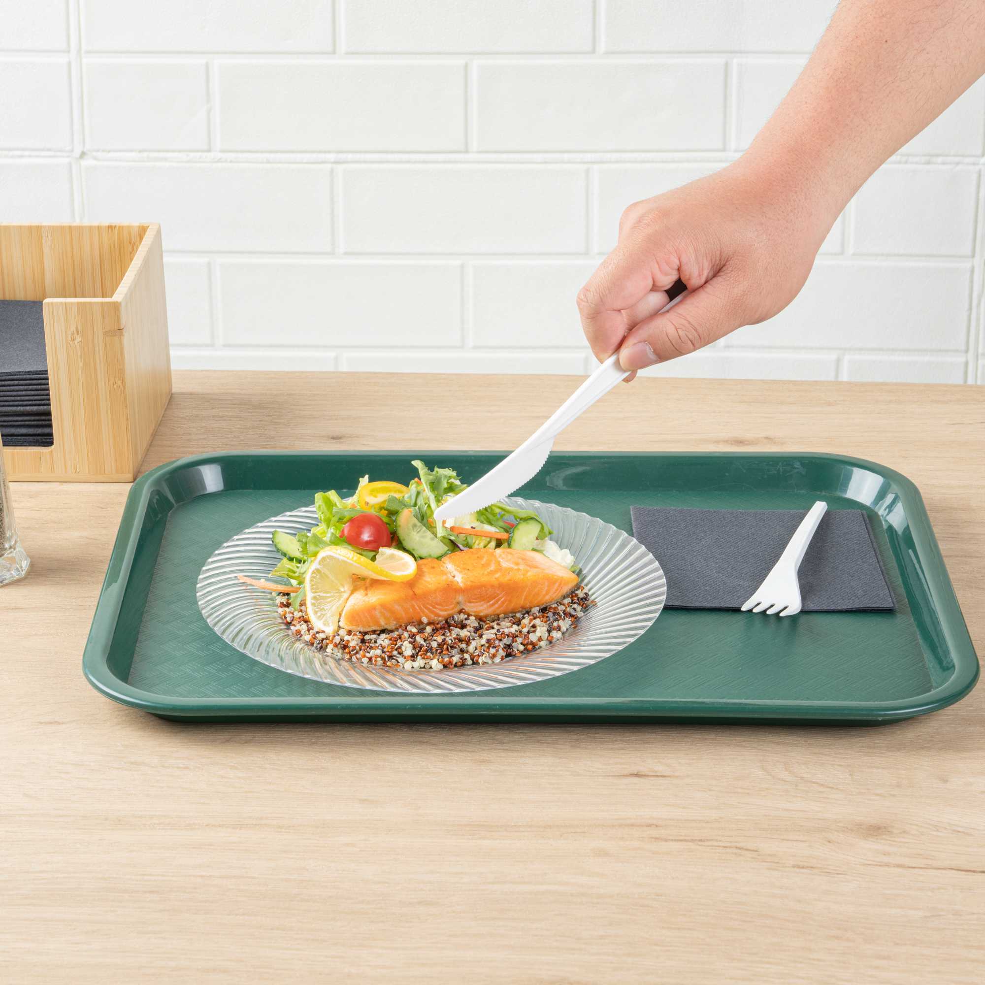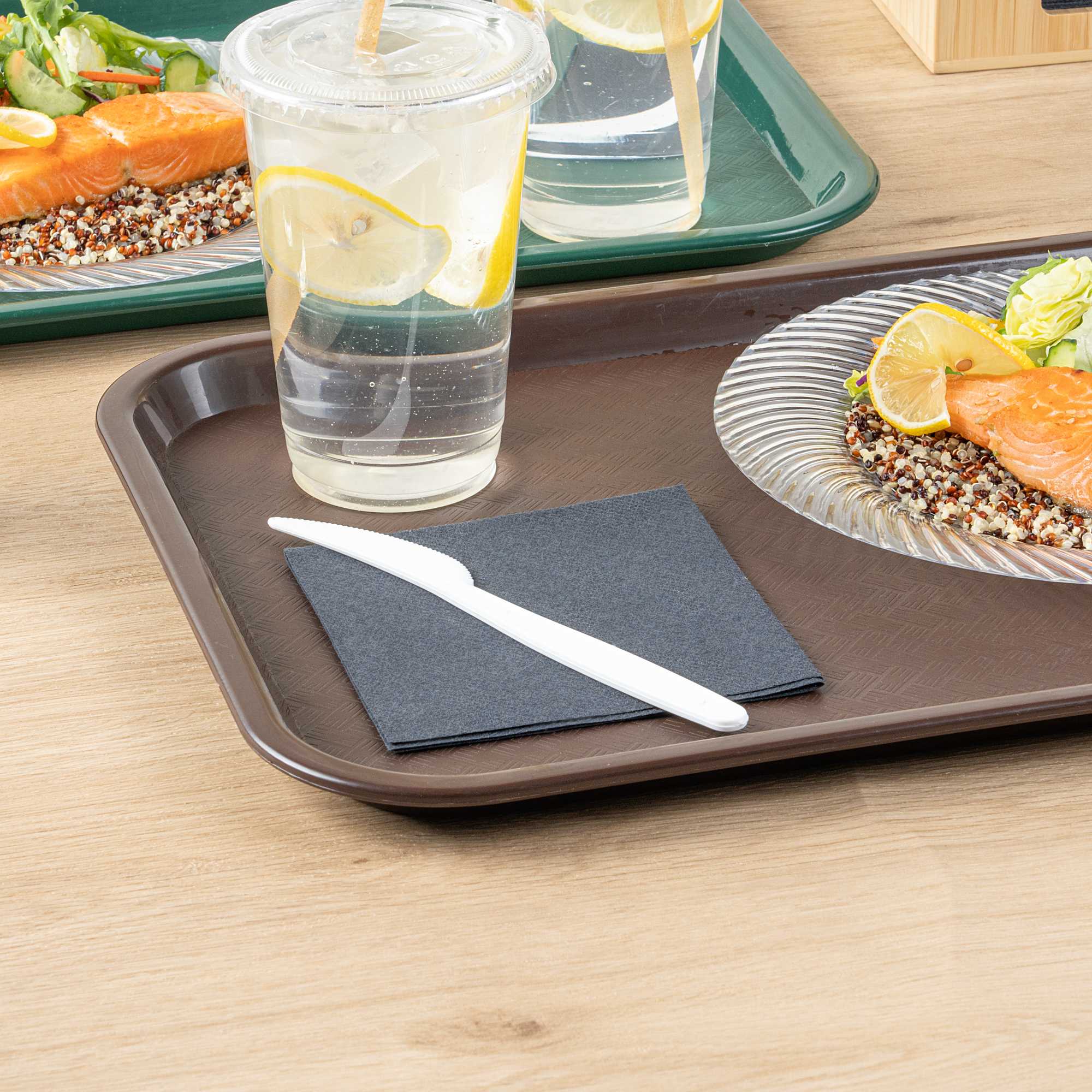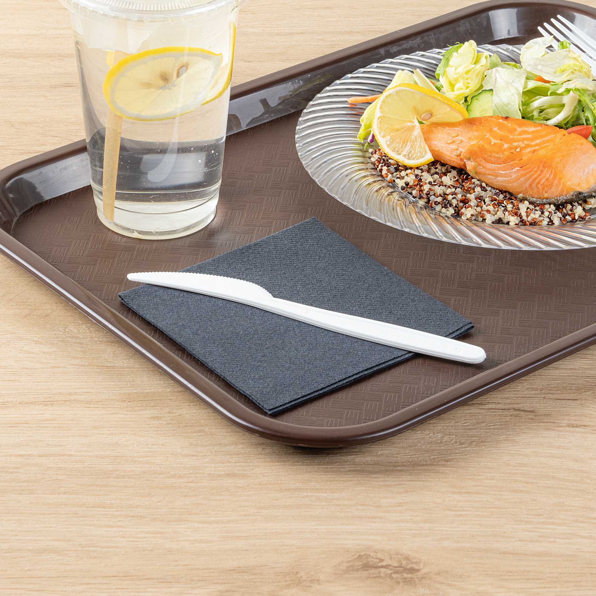 Reduce your carbon footprint by making the switch to commercially compostable cutlery with our Basic Nature White PLA Plastic Knives. These sustainable knives are made from nature-friendly PLA, a plant-based bioplastic that is naturally durable to keep it from cracking or bending. Designed to be BPI-certified commercially compostable, these knives provide a reliable and eco-friendly alternative to conventional plastic flatware. These disposable knives feature molded, easy-to-grip handles that provide a comfortable grip while slicing through desserts and appetizers. Featuring a pristine white finish, these PLA knives are designed to easily match any décor or venue. These disposable knives make the cleaning process convenient and easy. Each plastic knife measures 7 inches in length. Sold in a 250 count box.