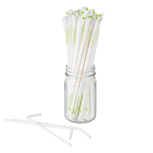 WHITE PLA PLASTIC/PBAT PLASTIC STRAW - WRAPPED, FLEXIBLE, COMPOSTABLE