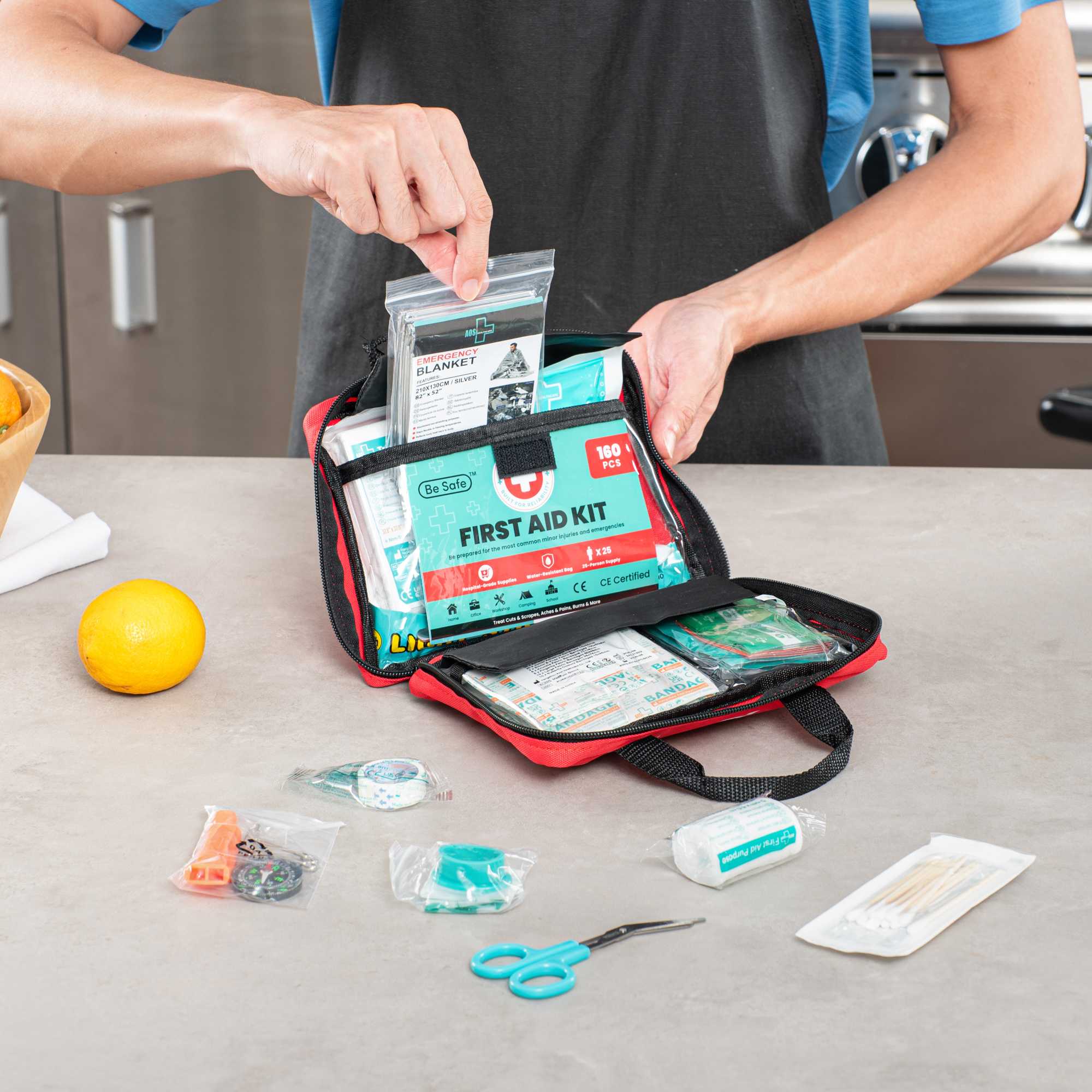 - 160-piece kit ensures comprehensive first aid readiness