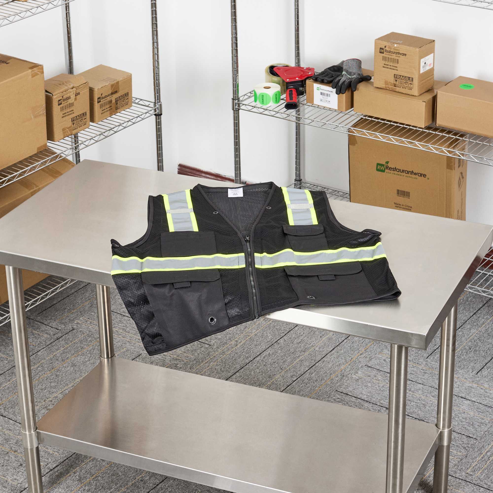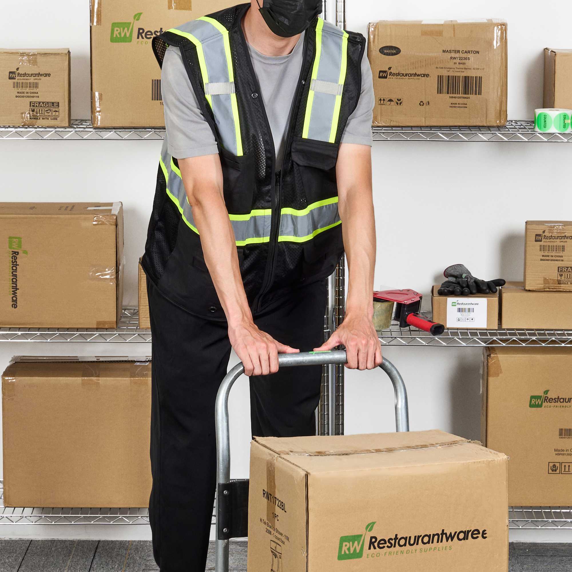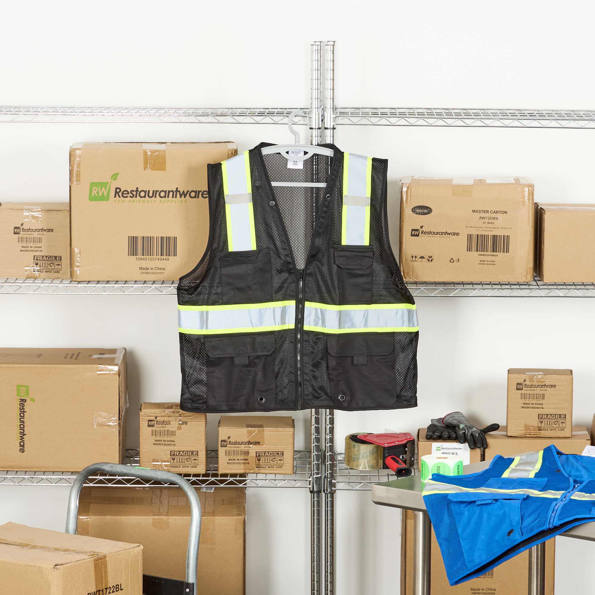Enhance safety and visibility with our versatile mesh safety vest. The Be Safe Reflective Stripes reflective safety vest boasts silver reflective tapes that enhance visibility, ensuring optimal safety for event staff and warehouse workers. Designed with a zipper front closure, this reflective safety vest provides a secure and swift fit during busy operations. Equipped with multiple pockets, this safety vest with pockets efficiently organizes tools and accessories, streamlining workflow and accessibility. Made from black plastic, this vest is machine washable, providing easy maintenance for continuous use. Measuring 27.20 inches in length and 24.80 inches in width, this vest is both functional and comfortable for various environments. Sold in a 20 count box.