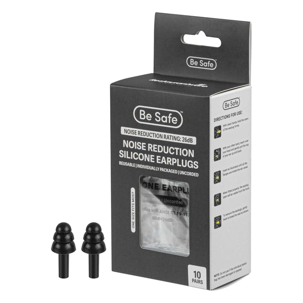 Enhance focus in bustling kitchens with noise-cancelling ear plugs. The Be Safe Black Silicone Uncorded Earplugs feature a humidity-resistant, reusable design, providing reliability in high-moisture environments. Made from pure silicone, these earplugs offer low pressure inside the ear for heightened comfort and are ideal as reusable earplugs, maintaining their shape over extended periods. ANSI-rated at 26dB, they significantly reduce kitchen noise distractions, while the CE-rated 32dB offers enhanced concentration during peak service times. Measuring 1.30 inches in length and 0.51 inches in width and height, these earplugs fit comfortably, boasting a Christmas tree design that adapts to most ear canals, making them perfect earplugs for sleeping. With 10 pairs per box, they ensure easy staff distribution, promoting efficient operations. Embrace a quieter work environment with these reliable earplugs. Each order includes 10 pairs.