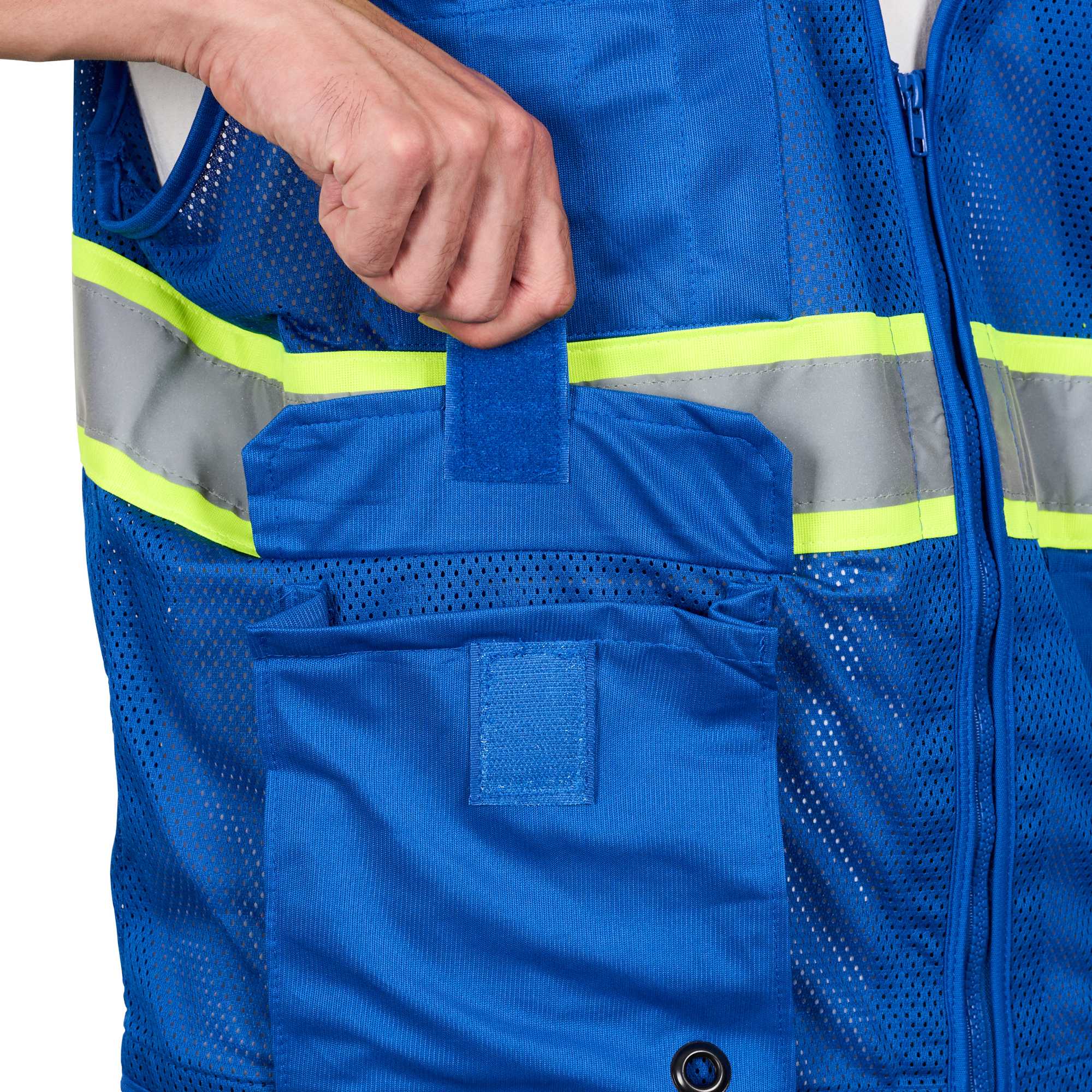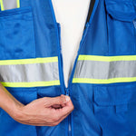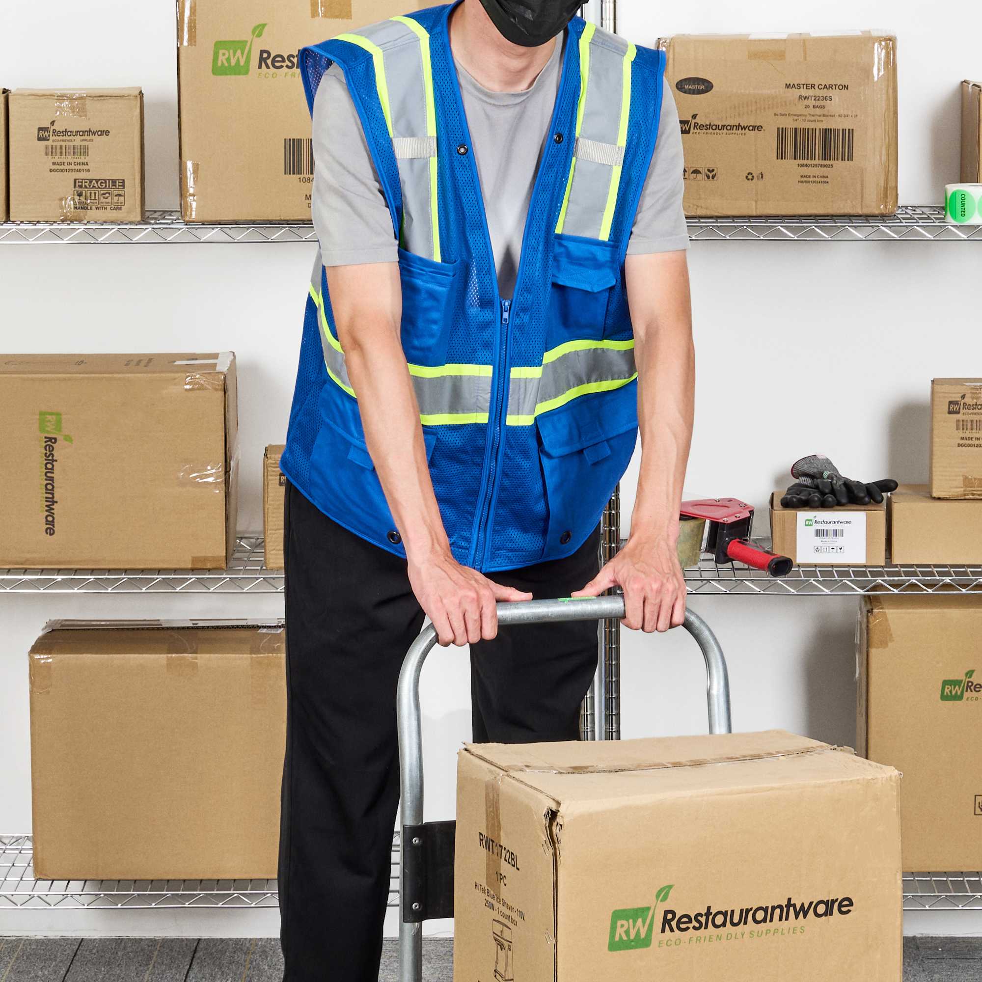 Enhance safety and efficiency in work environments with our Be Safe Reflective Stripes High Visibility Vest. This high visibility vest is crafted from durable plastic, making it ideal for busy kitchens where worker safety is paramount. With its high-visibility blue color, this reflective safety vest ensures team members are easily seen, reducing accidents and improving operational workflow. Equipped with multiple pockets, this multi-pocket safety vest provides ample storage for tools and notes, streamlining tasks and increasing productivity. Recommended for warehouses and event staff, this machine washable vest maintains its quality through numerous uses. Measuring 29.21 inches in length and 30.32 inches in width, this vest is perfect for late shifts or dim lighting conditions. Sold in a 1 count box.