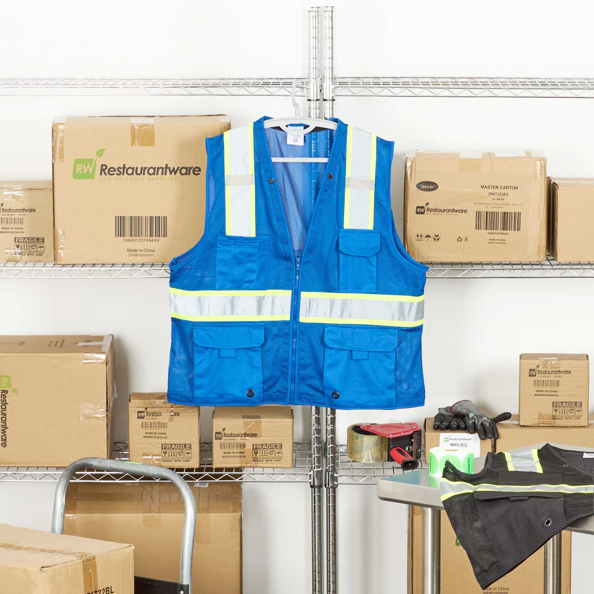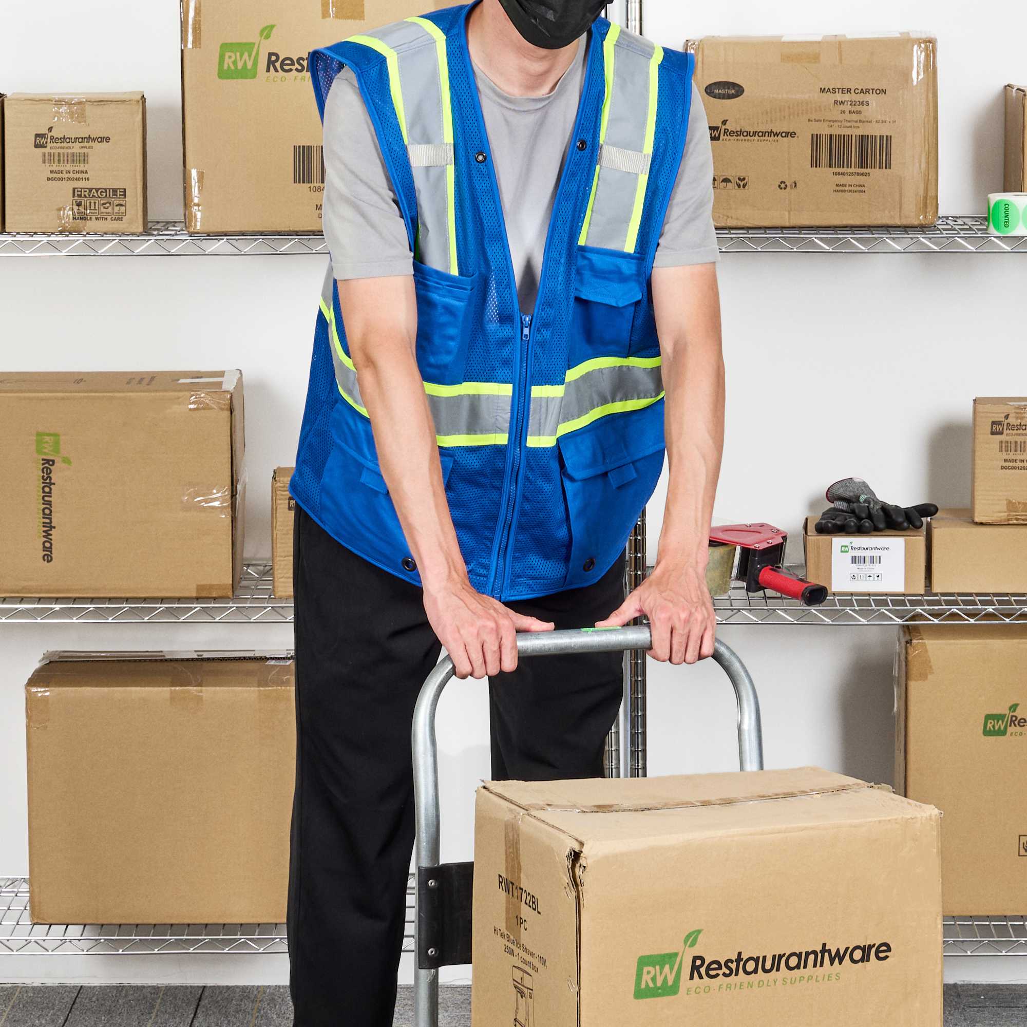 Enhance safety and efficiency with our versatile safety gear. The Be Safe Reflective Stripes High Visibility Vest features silver reflective tapes that significantly enhance visibility, ensuring safer environments in warehouse settings or for event staff requiring a high visibility vest. This reflective safety vest is equipped with multiple chest pockets that provide ample storage for tools and order pads, streamlining operations and maintaining organization. A zipper front closure allows for quick donning and removal, ideal for fast-paced environments and rush hours. Made from durable plastic, this polyester mesh safety vest is machine washable, promoting sustainability in your operations. With dimensions of 27.20 by 24.80 inches and a thickness of 0.20 inches, this vest combines comfort and functionality. Sold in a 20 count box.