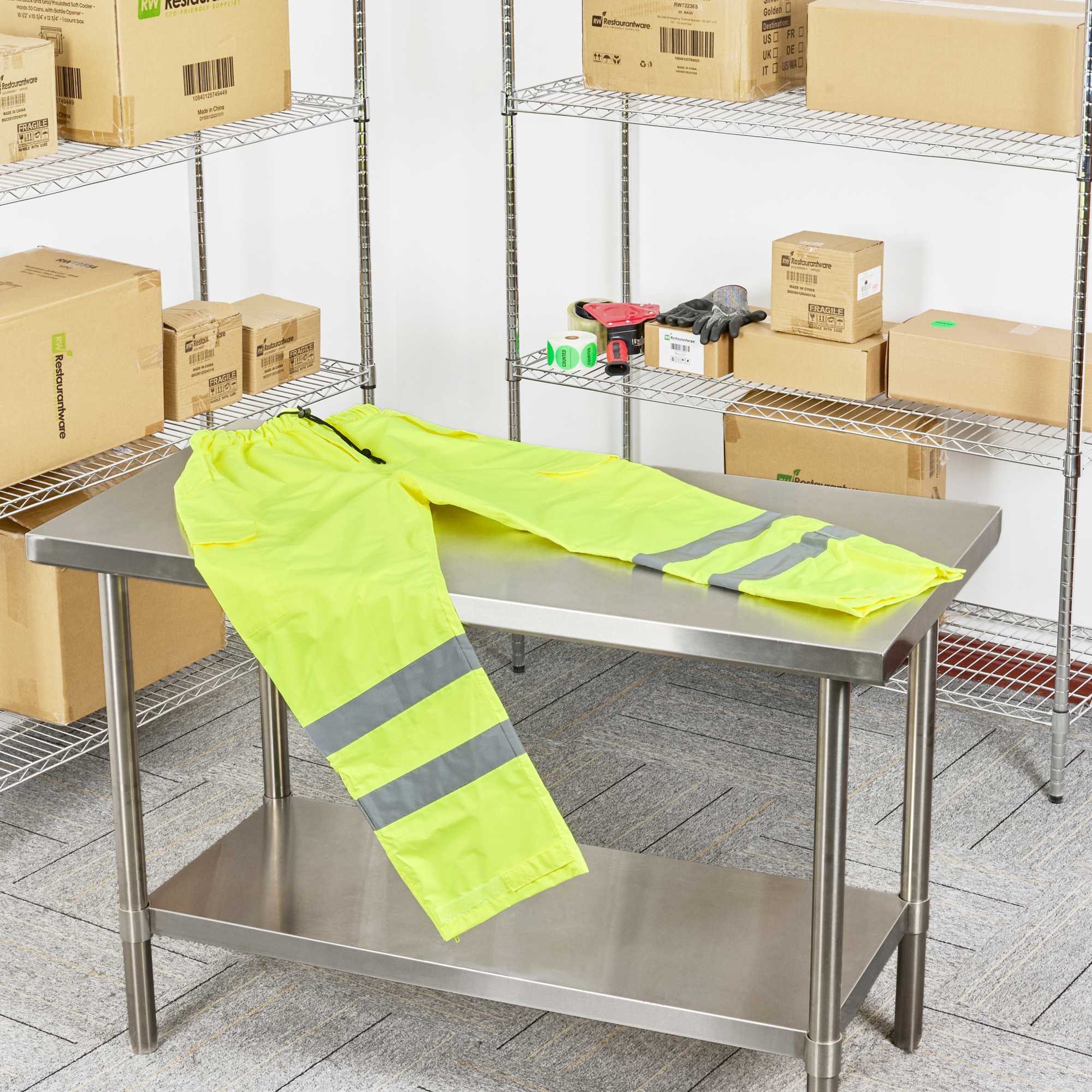 Ensure team safety in low-light conditions with our Be Safe High Visibility Rain Pants. These high visibility rain pants, crafted from lime-colored plastic, feature hi-vis reflective tape that significantly enhances visibility, providing peace of mind in high-risk environments. Designed for ultimate functionality, these waterproof rain pants boast 100% waterproof protection with stitched and taped seams, keeping staff dry even during the heaviest downpours. The reflective rain pants incorporate adjustable leg openings, ensuring a secure and comfortable fit for staff navigating wet conditions. Additionally, the elastic waist with drawcord offers comfort and adaptability during long shifts, making them ideal for demanding work settings. Measuring 32 inches in length and 15.75 inches in width, these pants are machine washable and recyclable, aligning with sustainability goals. Sold in a 1 count box.