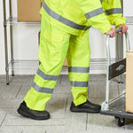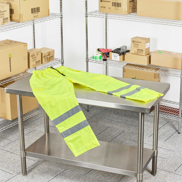 Enhance roadside safety with high visibility rain protection. The Be Safe Waterproof High Visibility Rain Pants offer unmatched visibility with hi-vis reflective tape that significantly enhances worker safety in high-risk environments. Designed with an adjustable waist, these reflective rain pants provide comfort during extended shifts, making them ideal for foodservice professionals who require dependable outdoor gear. Crafted from durable plastic, these waterproof rain pants feature stitched and taped seams, ensuring 100% waterproof protection against the elements, while zippered leg openings facilitate easy on/off over boots, accommodating busy schedules. With dimensions of 30.98 inches in length, 14.76 inches in width, these rain pants are machine washable, reflecting your commitment to sustainable practices. Sold in a 20 count box.