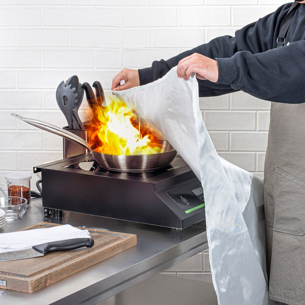 Ensure rapid response to small fires with this fire safety blanket. The Be Safe Flame-Retardant Fire Safety Blanket offers a compact size of 39.4 inches by 39.4 inches, providing convenient storage in kitchens for quick access during emergencies. This emergency fire blanket meets CE safety standards, delivering reliable fire protection for commercial kitchens and food trucks. Made from durable fiberglass, it withstands temperatures up to 1076 degrees Fahrenheit, ensuring kitchen safety without the mess of traditional extinguishers. The kitchen fire blanket is designed with a wall-mountable pouch, allowing staff to access it effortlessly in urgent situations. Lightweight and easy to handle, this blanket can be deployed by simply pulling down the tabs, making it an essential tool for any foodservice establishment. Equip your kitchen with this essential safety tool to enhance your fire safety measures today. Each order includes 20 Be Safe Flame-Retardant Fire Safety Blankets.