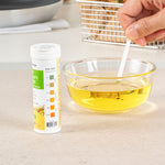 To use these kitchen test strips, wait until oil has cooled completely, then hold a test strip in the oil for around 2 seconds. After 30 seconds, compare the strip to the evaluation guide for results.