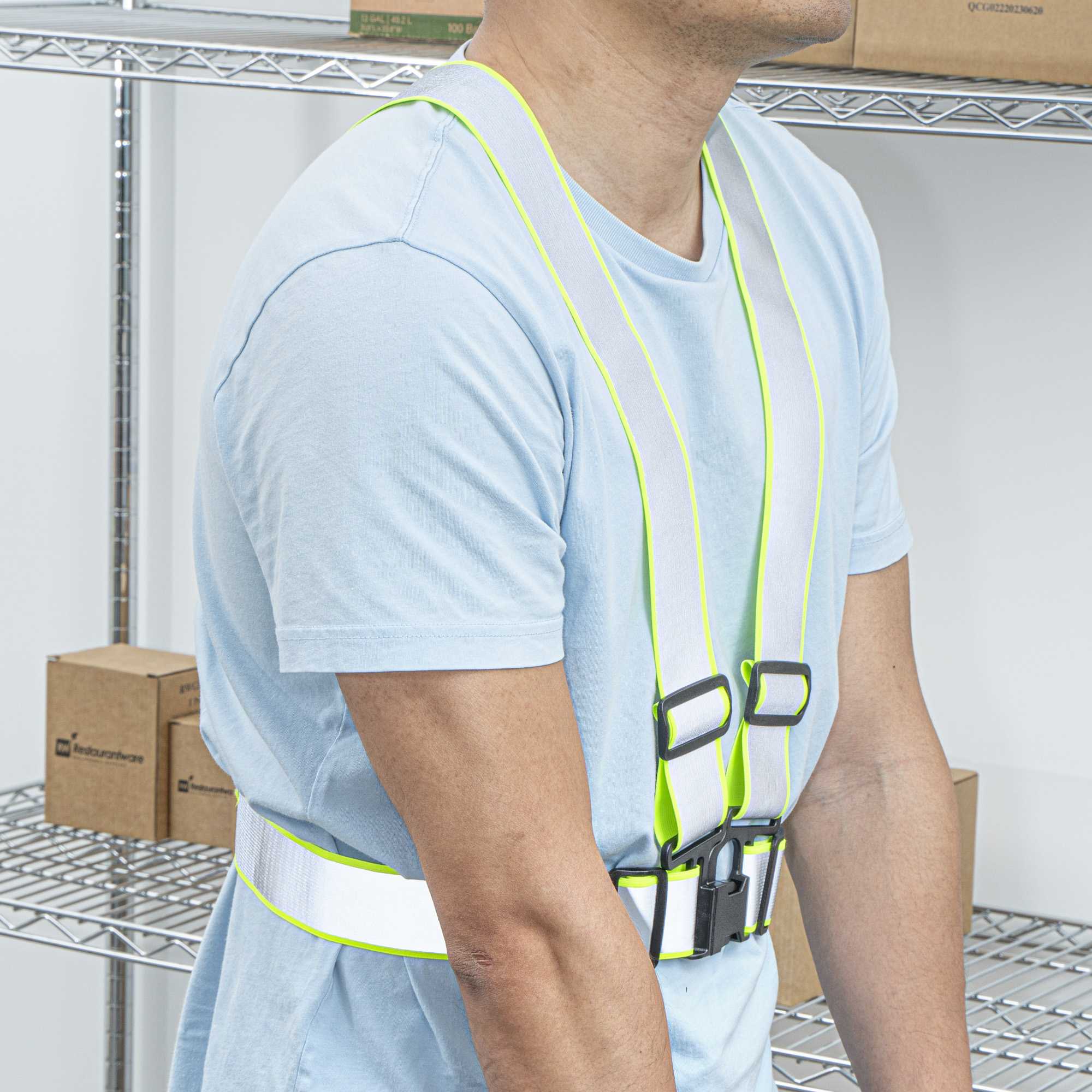 Stay safe and visible with our Be Safe Lime High Visibility Safety Suspender. This safety vest features a bright lime green color to draw attention, ensuring your crew is always seen, whether they're running, cycling, or working on the roadside. The 1.57-inch wide straps include a silver reflective strip for enhanced visibility at night or in low-light conditions. Made from lightweight polyester, this high-visibility vest features adjustable straps, making it easy to fit team members of various sizes. This suspender offers a one-size-fits-most design with fully adjustable straps and a secure black plastic waist buckle for a comfortable, custom fit. This suspender measures 20.08 inches in length by 20.87 inches in width. Sold in a 1 count box.