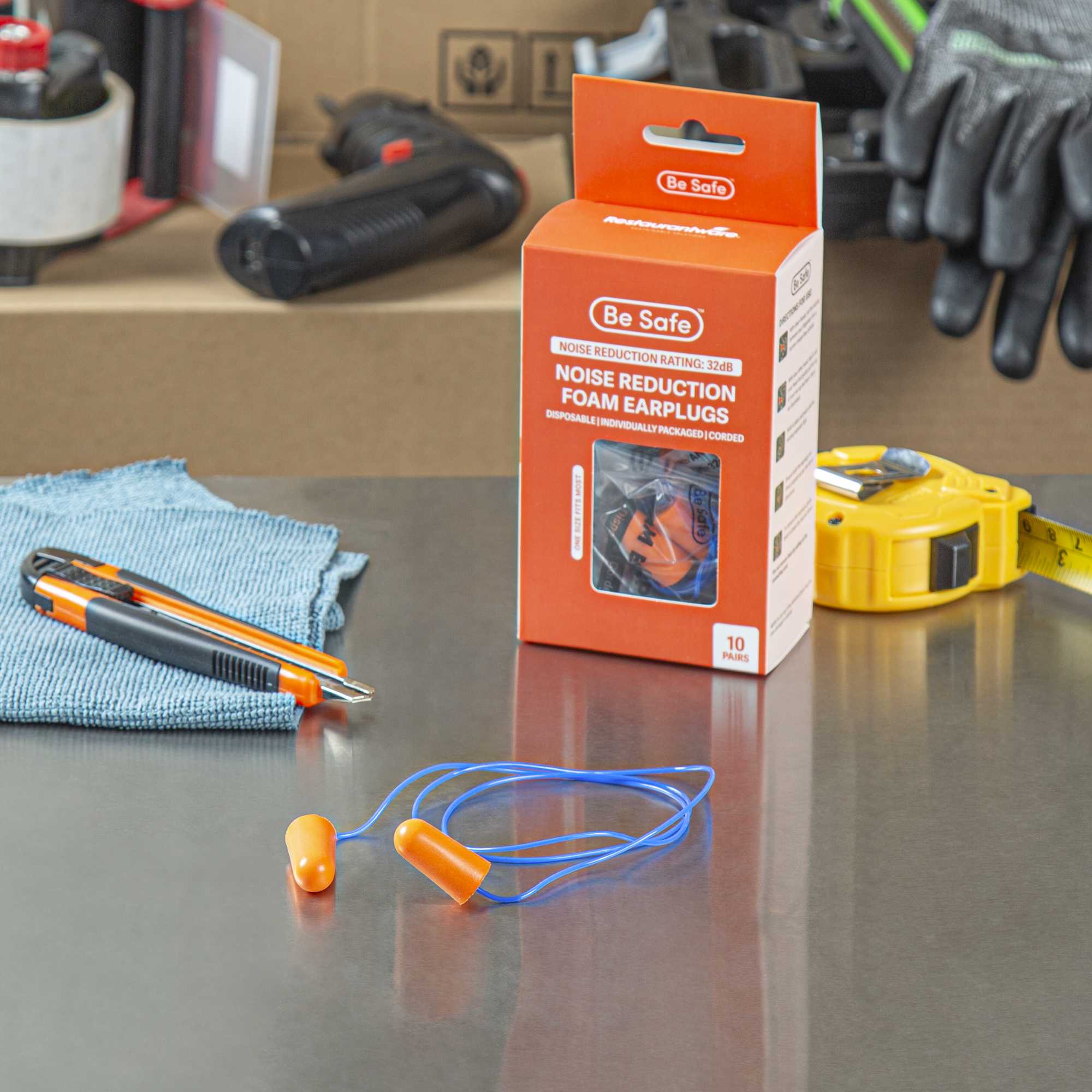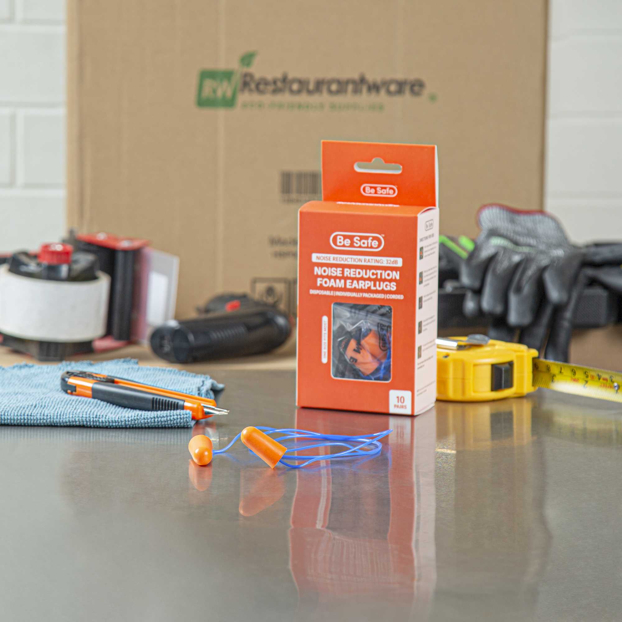 Ensure a quieter kitchen environment with dependable ear protection. Be Safe Orange and Blue Corded Foam Earplugs deliver enhanced focus for staff with their 32dB NRR, effectively minimizing distracting kitchen noise. Crafted from soft PU foam, these foam earplugs gently expand to fit most ear canals, providing premium comfort and protection during long shifts. The PVC cord ensures these reusable earplugs are securely fastened, preventing loss and allowing them to be easily accessible during busy service hours. Designed with a bullet shape, these noise-reducing earplugs are simple to insert and remove, aiding in quick transitions during hectic kitchen operations. With each 10-pair box, managing inventory becomes straightforward, making them ideal for large kitchens needing to equip multiple staff members efficiently. Equip your team with these essential foam earplugs to maintain focus and productivity. Each order includes 200 pairs.