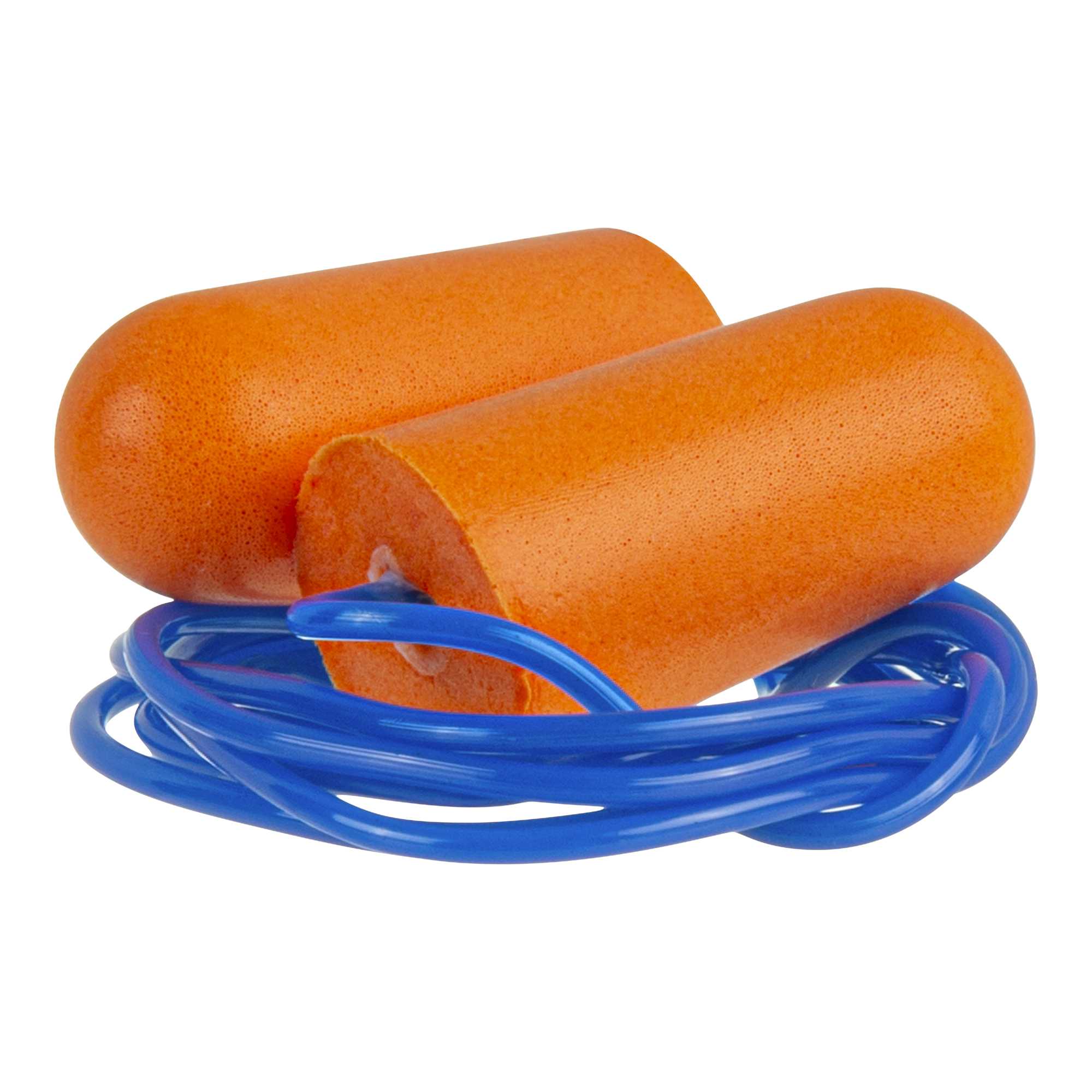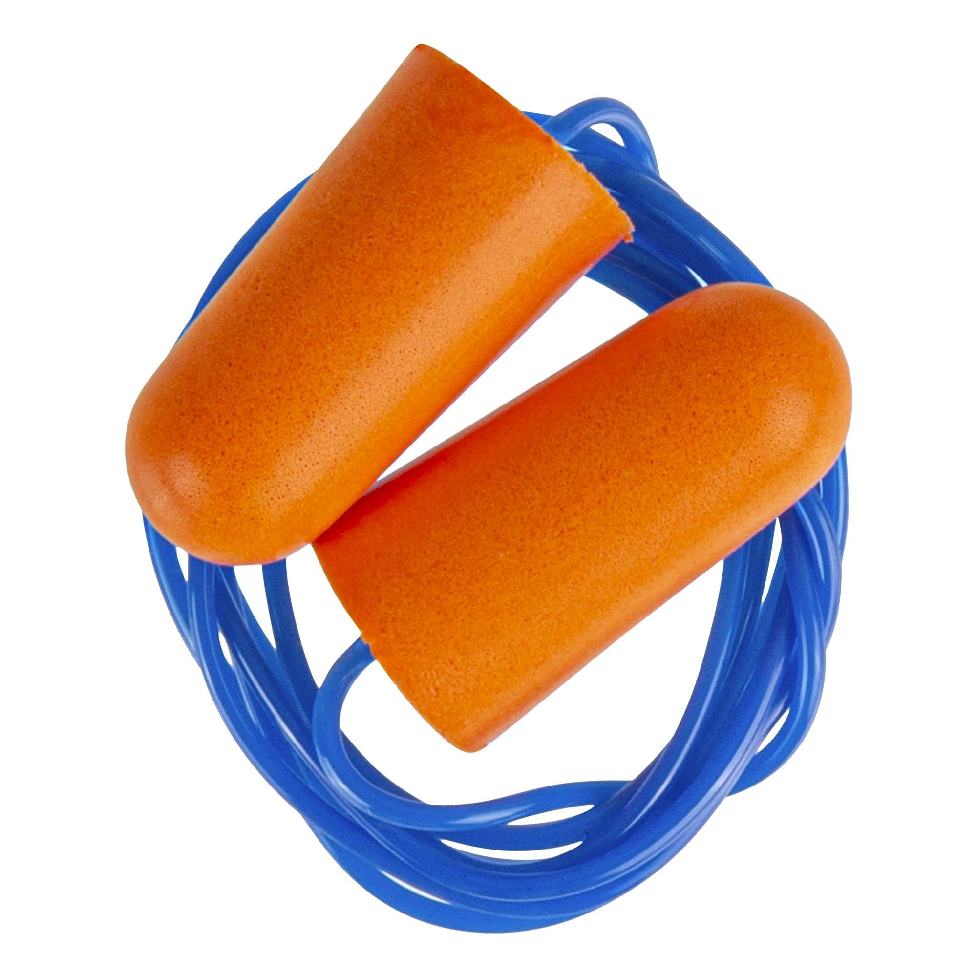 ORANGE AND BLUE CORDED FOAM EARPLUGS