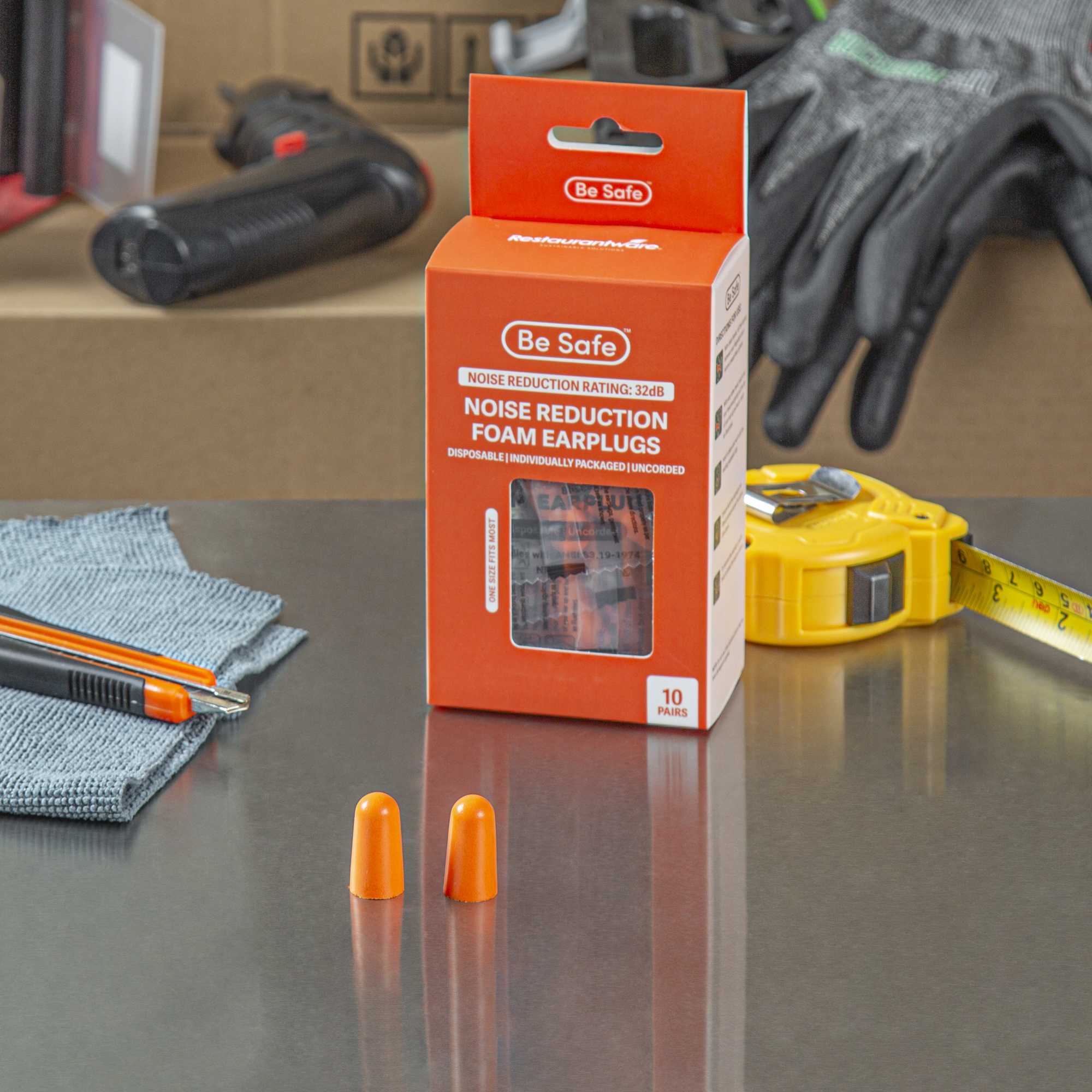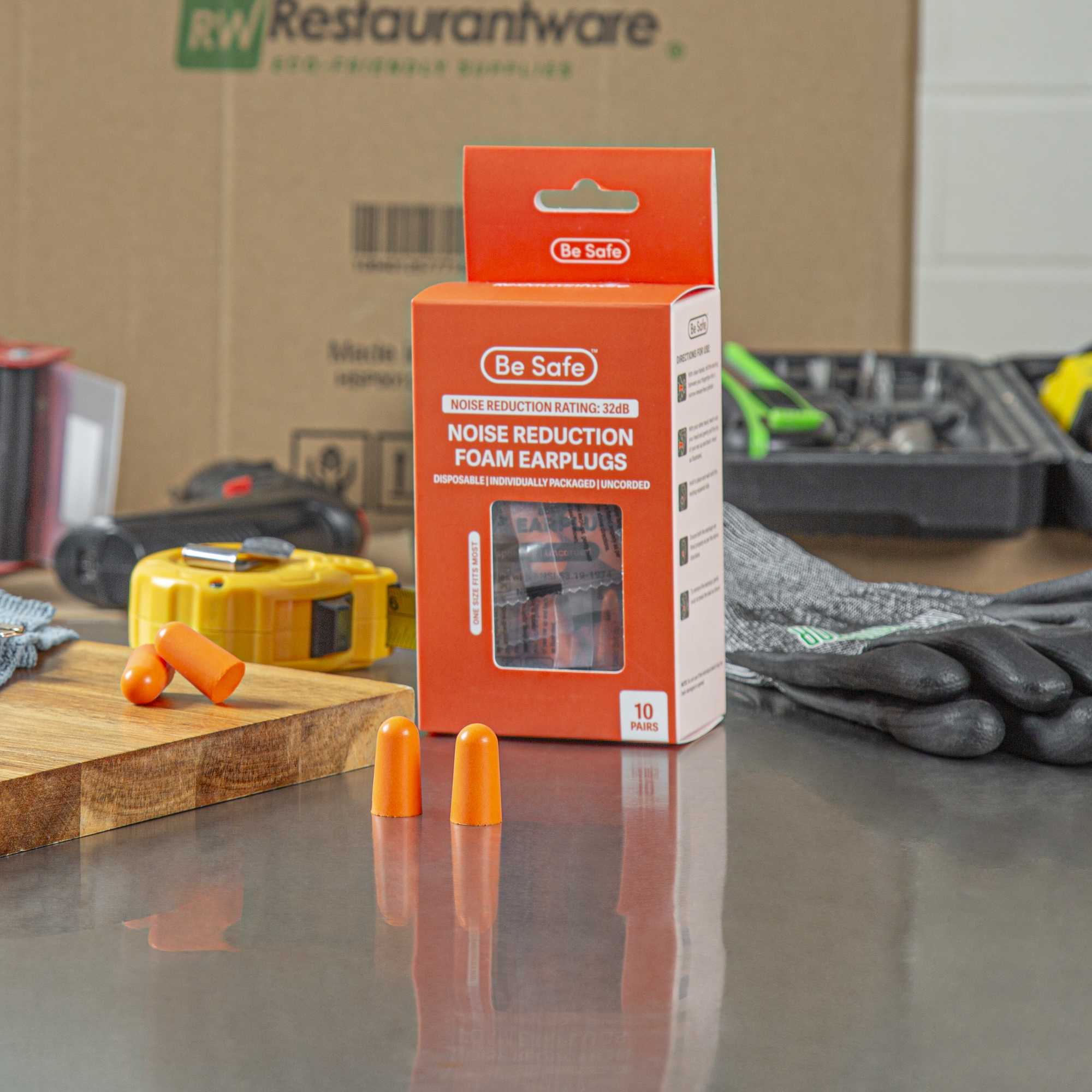 Ensure a peaceful kitchen environment with reliable sound protection. Be Safe Orange Uncorded Foam Earplugs offer a secure fit with individually wrapped design, measuring 0.98 inches in length, 0.55 inches in width, and 0.55 inches in height. Crafted from soft PU foam, these foam earplugs provide low pressure inside the ear, enhancing comfort while reducing noise pollution. With an ANSI 32dB rating, these noise reduction earplugs effectively minimize background noise, creating a quieter workspace. Designed to fit the majority of ear canals, the bullet shape ensures ease of use, making them ideal construction earplugs for busy environments. CE certified, these earplugs comply with foodservice safety standards, offering dependable protection in demanding settings. Simplify inventory management with 10 pairs per box, ensuring you always have the right amount on hand. Enhance your foodservice operations with these essential ear protection tools. Each order includes 200 pairs.