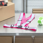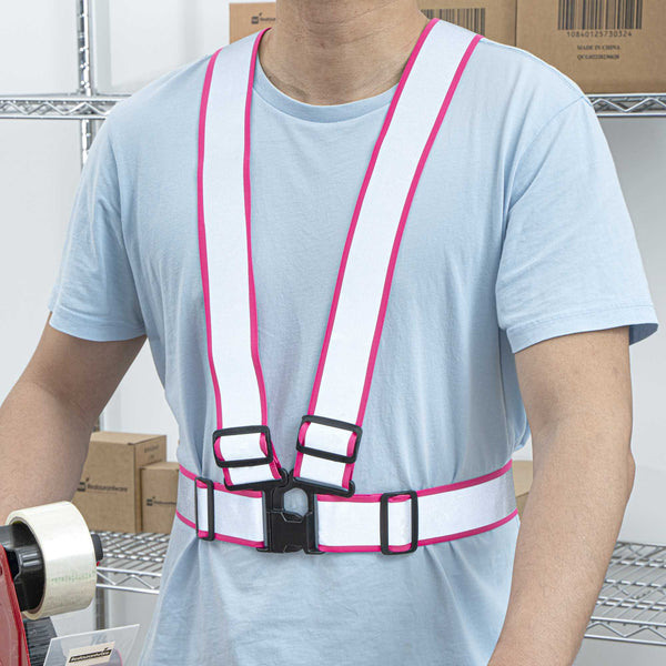 Prioritize visibility and style with our Be Safe Pink High Visibility Safety Suspenders. This eye-catching pink suspender features 1.57-inch wide reflective tape, boosting visibility in nighttime or low-visibility conditions, ideal for event staff, joggers, and traffic controllers. Crafted from durable, lightweight polyester, it’s designed for comfort without compromising safety. The adjustable straps and one-size-fits-most construction provide a secure, personalized fit, while the black plastic buckle keeps everything reliably fastened. Each suspender measures 20.08 inches in length by 20.87 inches in width. Sold in a 1 count box.
