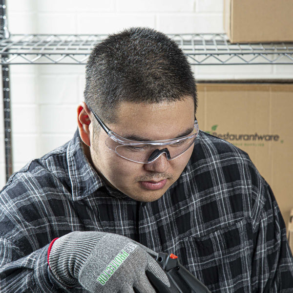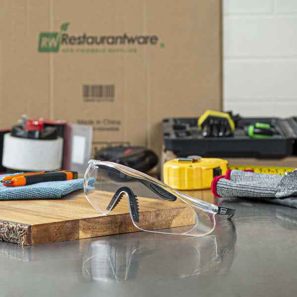 Protect your eyes in bustling kitchens with clarity that lasts. The Be Safe Safety Glasses ensure long-term clear visibility, making them indispensable safety goggles for busy foodservice environments. Their impact protection lens safeguards eyes during hectic shifts, while the anti-fog coating maintains clarity even in steamy conditions, ensuring reliability as ansi z87.1 safety glasses. Crafted from recyclable plastic, these uv protection glasses offer durability and sustainability, providing a dependable choice for chefs and staff. Enhance safety protocols with these essential eye protectors, designed to withstand the demands of the foodservice industry. With a size of 6.06 x 6.30 x 2.05 inches, these goggles are lightweight yet sturdy. Each order includes 10 glasses.